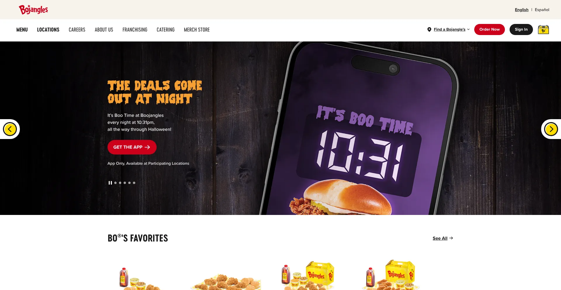 bojangles.com dispose d'une application mobile iOS disponible, indiquant une accessibilité multiplateforme pour les utilisateurs d'appareils Apple.