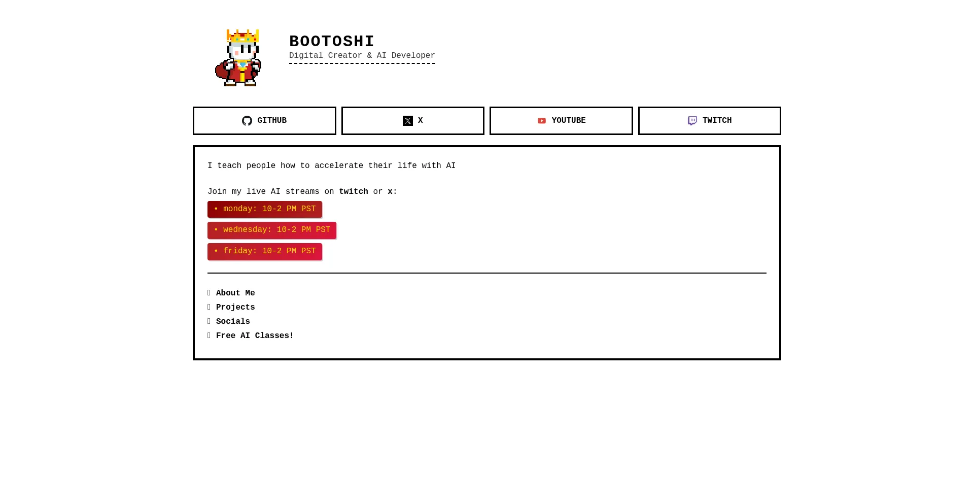 www.youtube.com www.bootosh.ai bootosh.ai github.com twitch.tv x.com