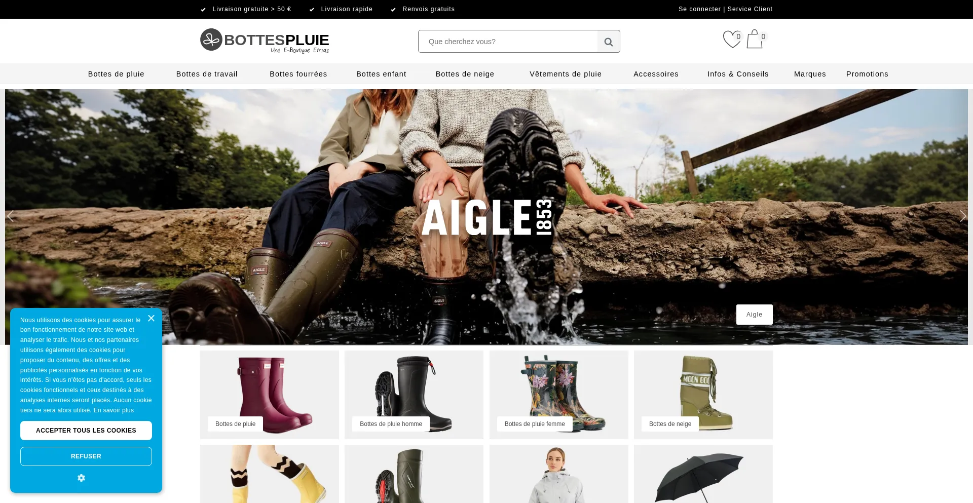 Achetez vos bottes, impermĂ©ables et accessoires de pluie sur Bottespluie ✓ Grand choix ✓ Livraison gratuite dĂšs 50€