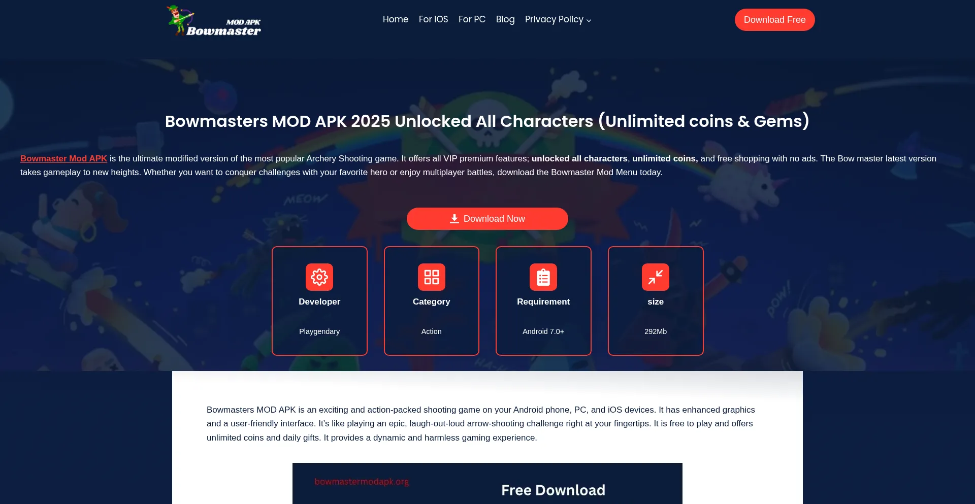 Get Bowmaster Mod APK free for android, unlocked all VIP characters, coins, gems & free shopping with no ads. Download now and dominate the Bow master game.