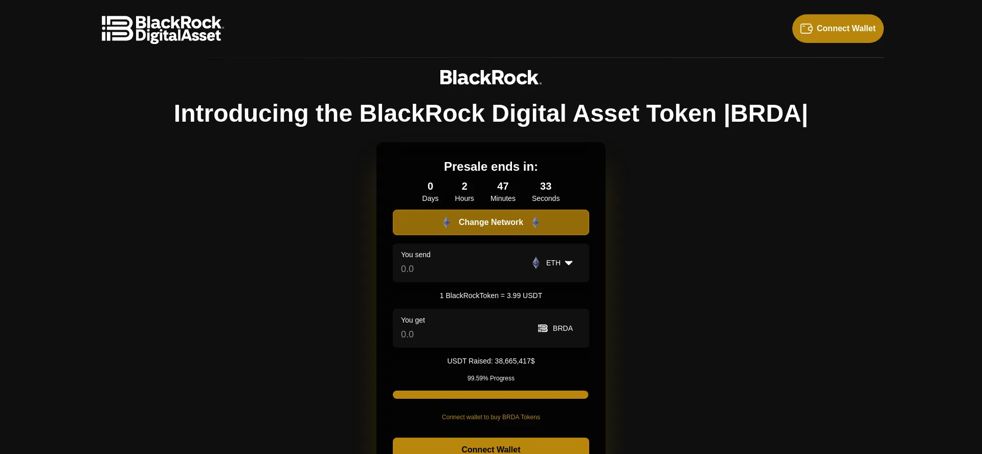 Join the BlackRock BRDA Token presale today! Acquire BRDA Tokens early and support the future of asset management and digital finance. Limited-time offers available.