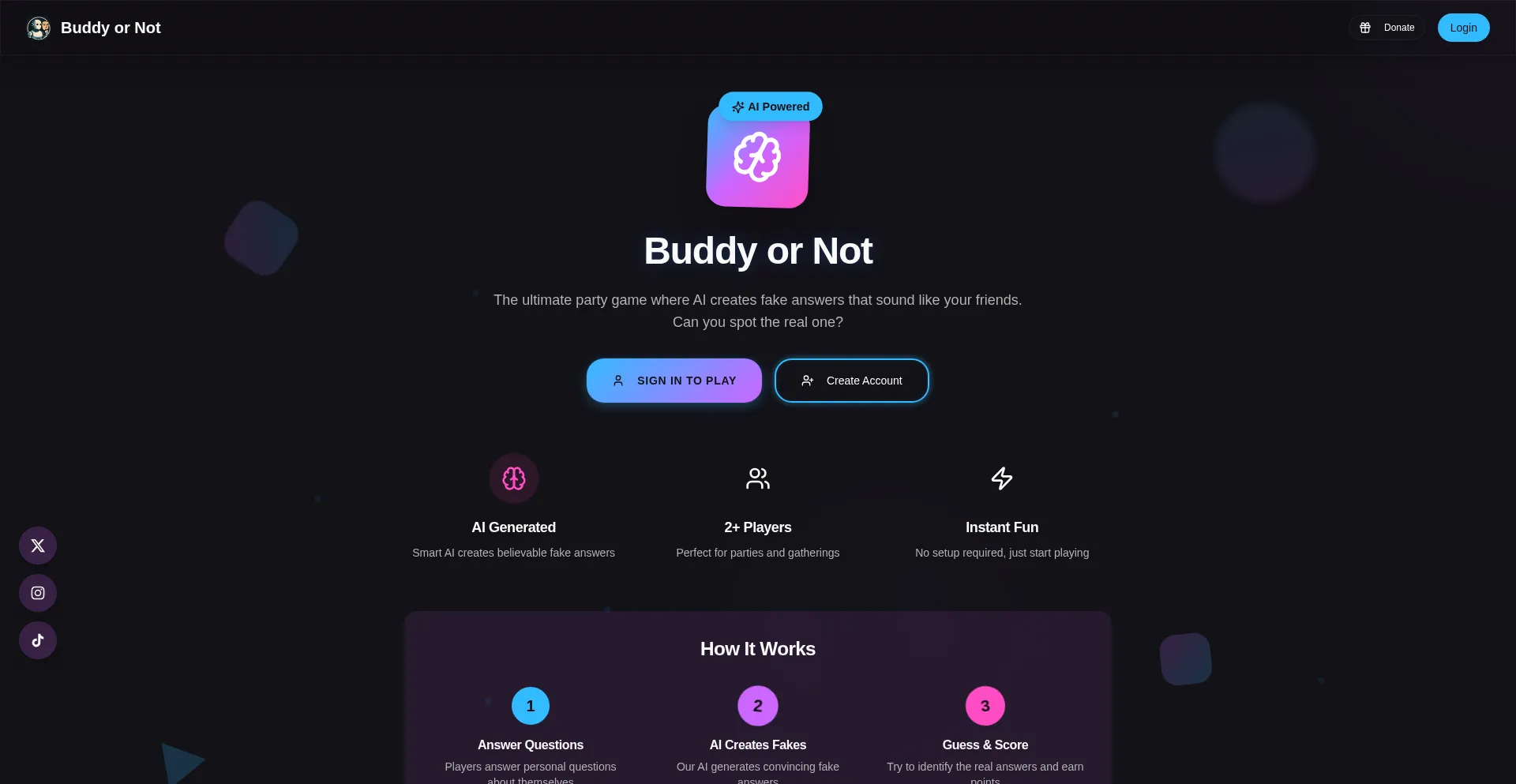 An AI-powered party game where you guess which answer came from your friend among AI-generated fakes.