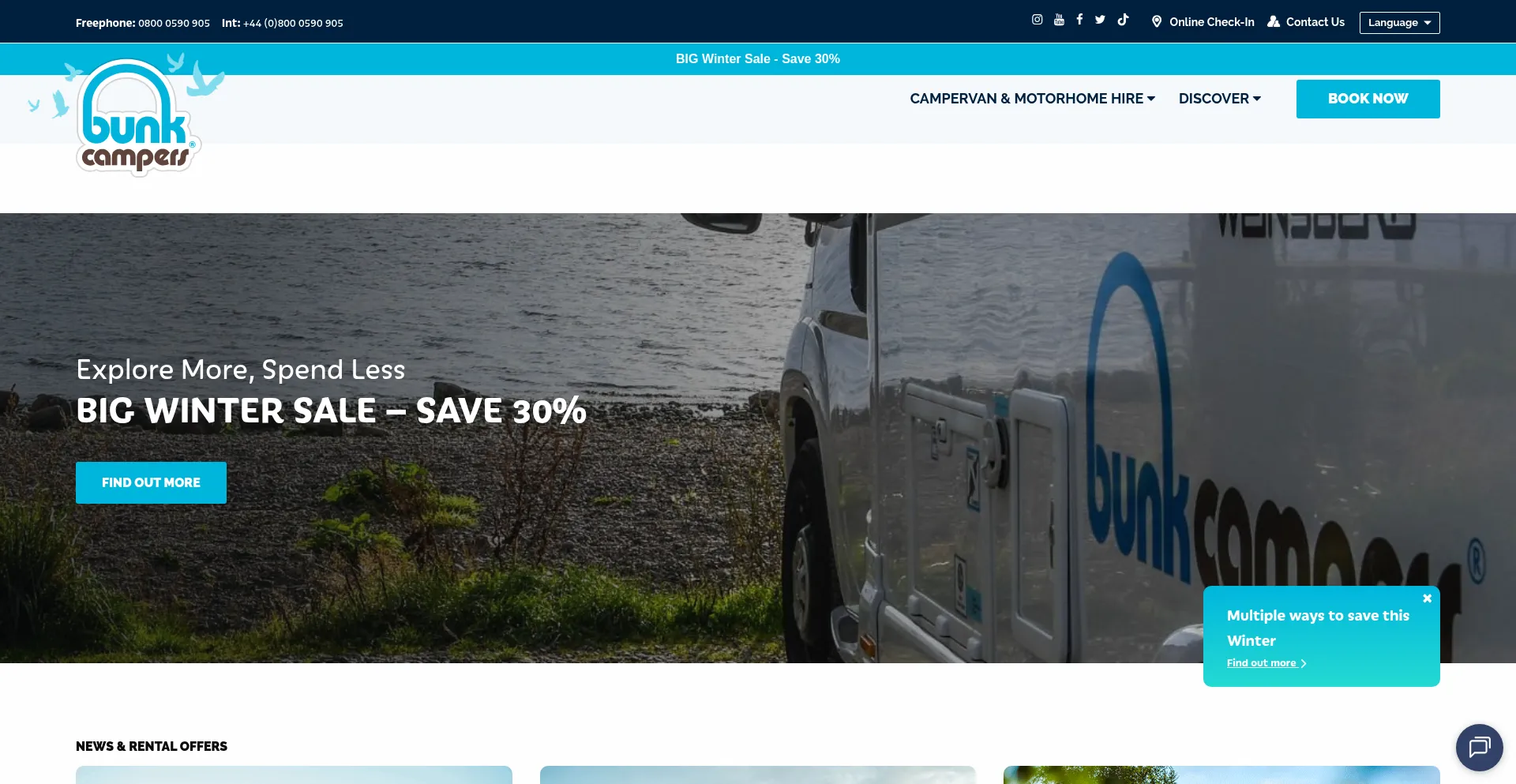For Campervan & Motorhome Hire in the UK & Ireland, Bunk Campers offer a range of vehicles to suit all budgets