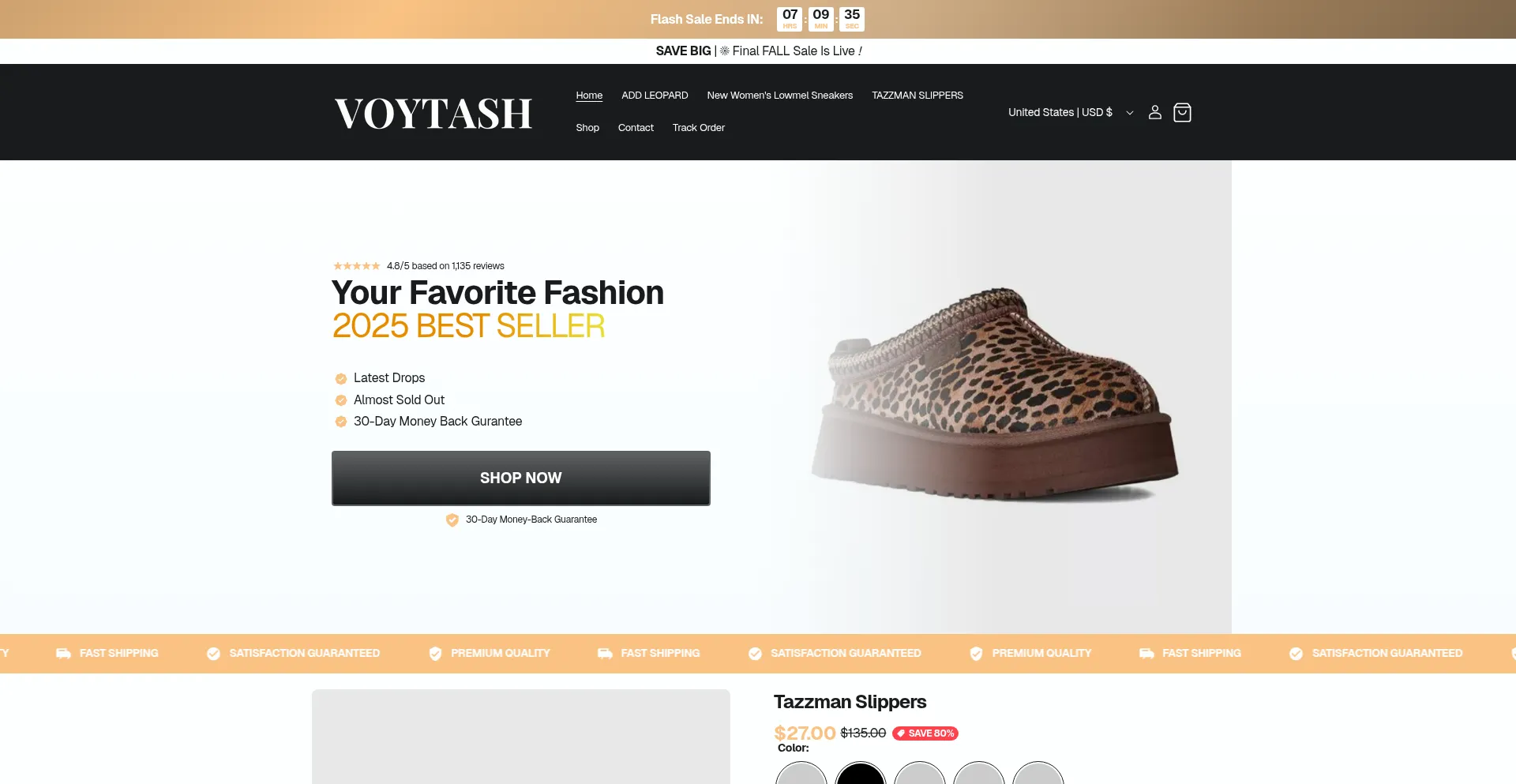 Shopping, Reliable Payment Method, Deals, Uses Free eCommerce Engine, Shopify Platform, AI-generated Text, Young Domain