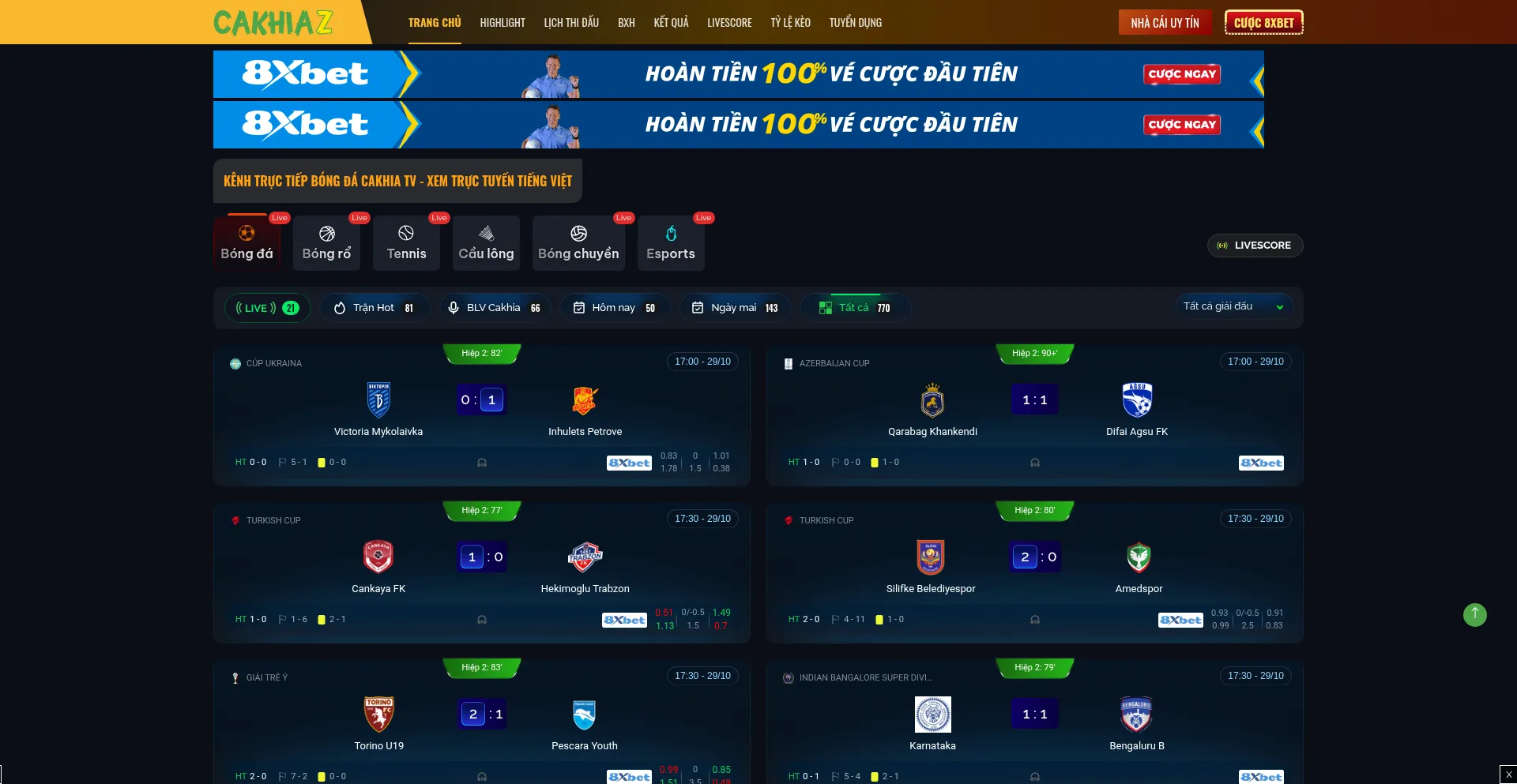 Cakhia TV - Xem Trá»±c Tiáșżp BĂłng Đå, Link Trá»±c Tuyáșżn hĂŽm nay