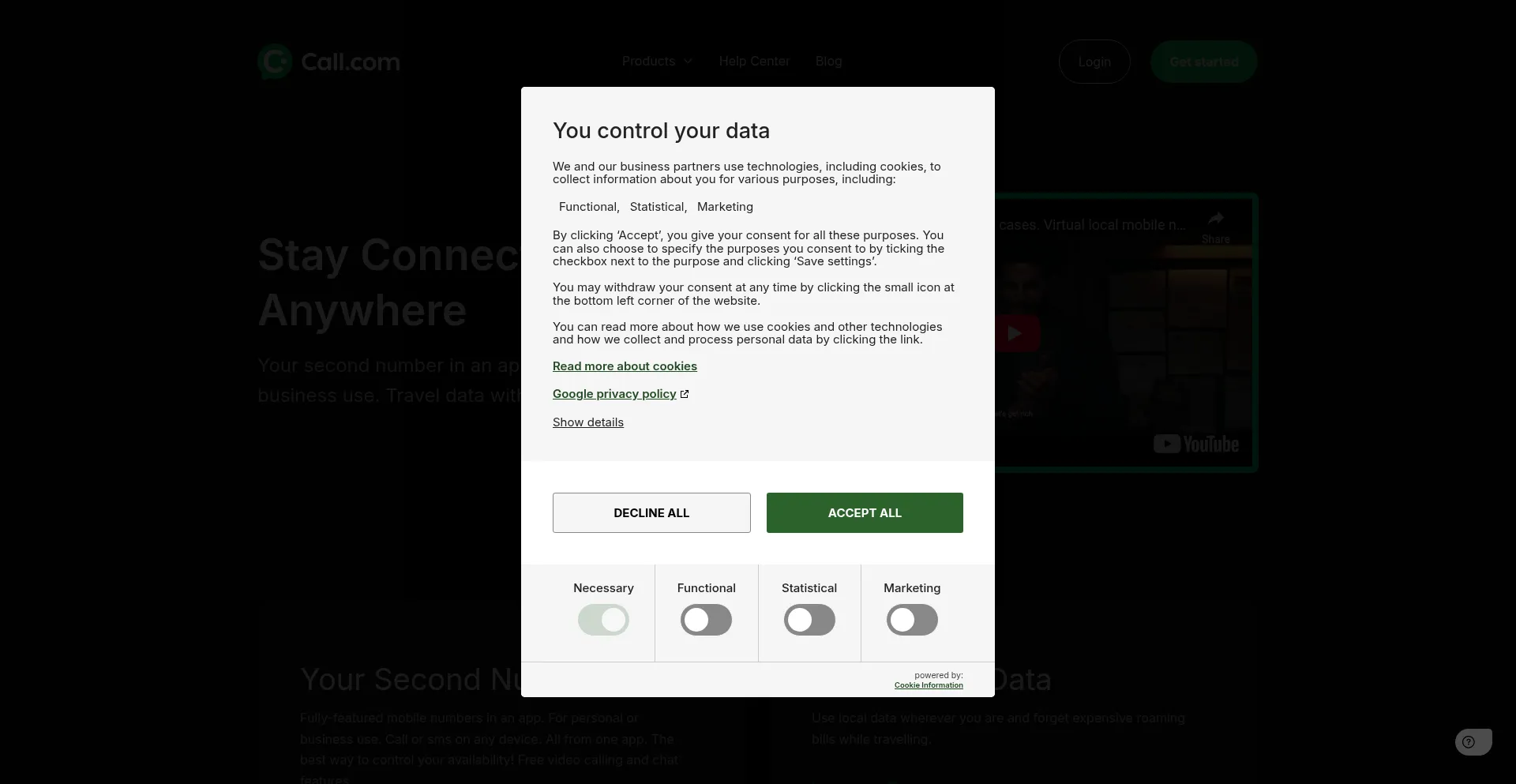 Get a second phone number with Call.com for personal or business use. Stay connected with Travel eSIM for hassle-free data while traveling.