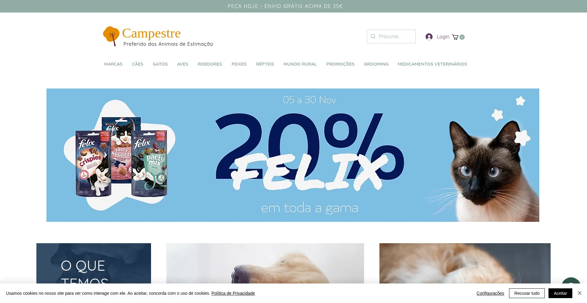 Pet Shop Online - A Campestre oferece produtos de qualidade para animais de estimação de todas as espĂ©cies - Alimentação, saĂșde e acessĂłrios, todos a um preço irresistĂ­...