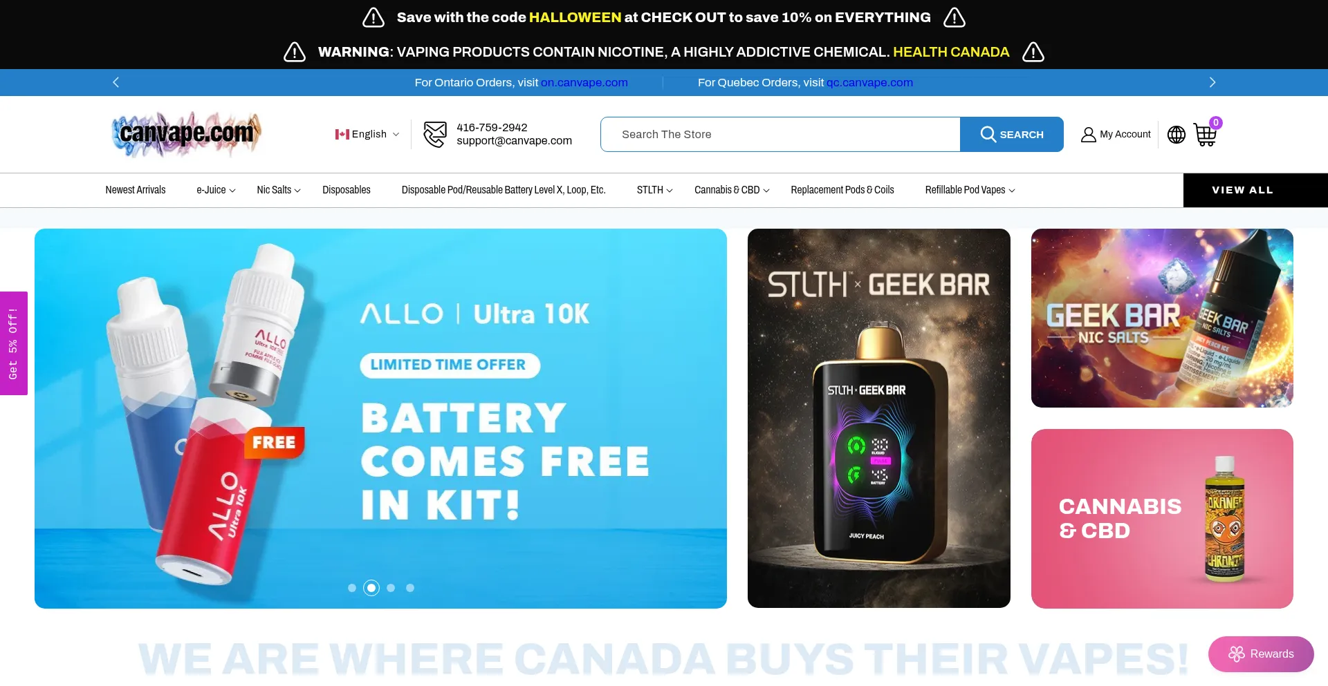 Canvape offers the largest selection of vapes, mods, e-cigarettes, and accessories in Canada. Shop premium e-liquids, tanks, coils, and more at best prices.
