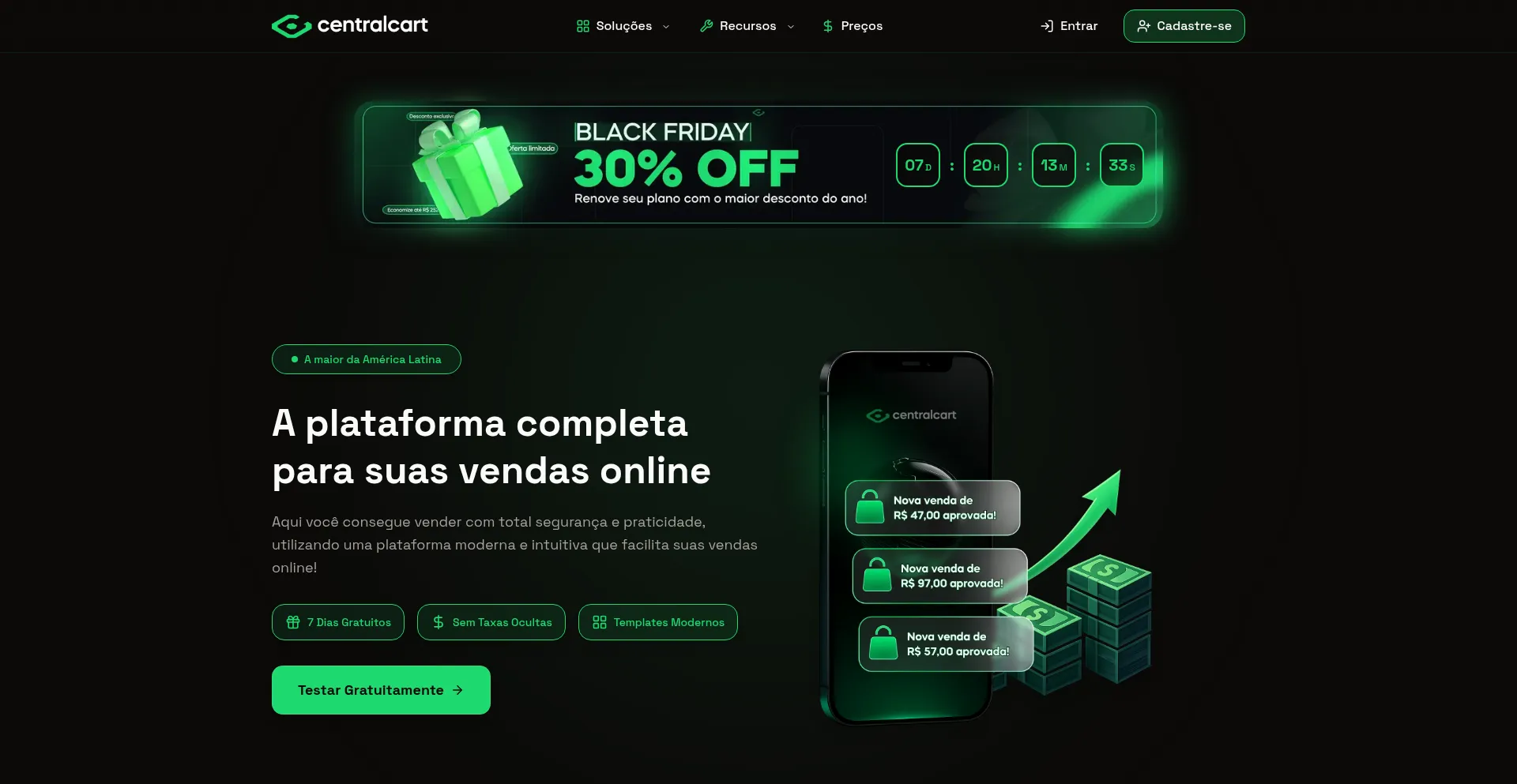 A CentralCart é uma plataforma de criação de lojas para produtos digitais com entrega automåtica e em tempo-real com sistema de gestão de produtos e pedidos. Garanta uma av...