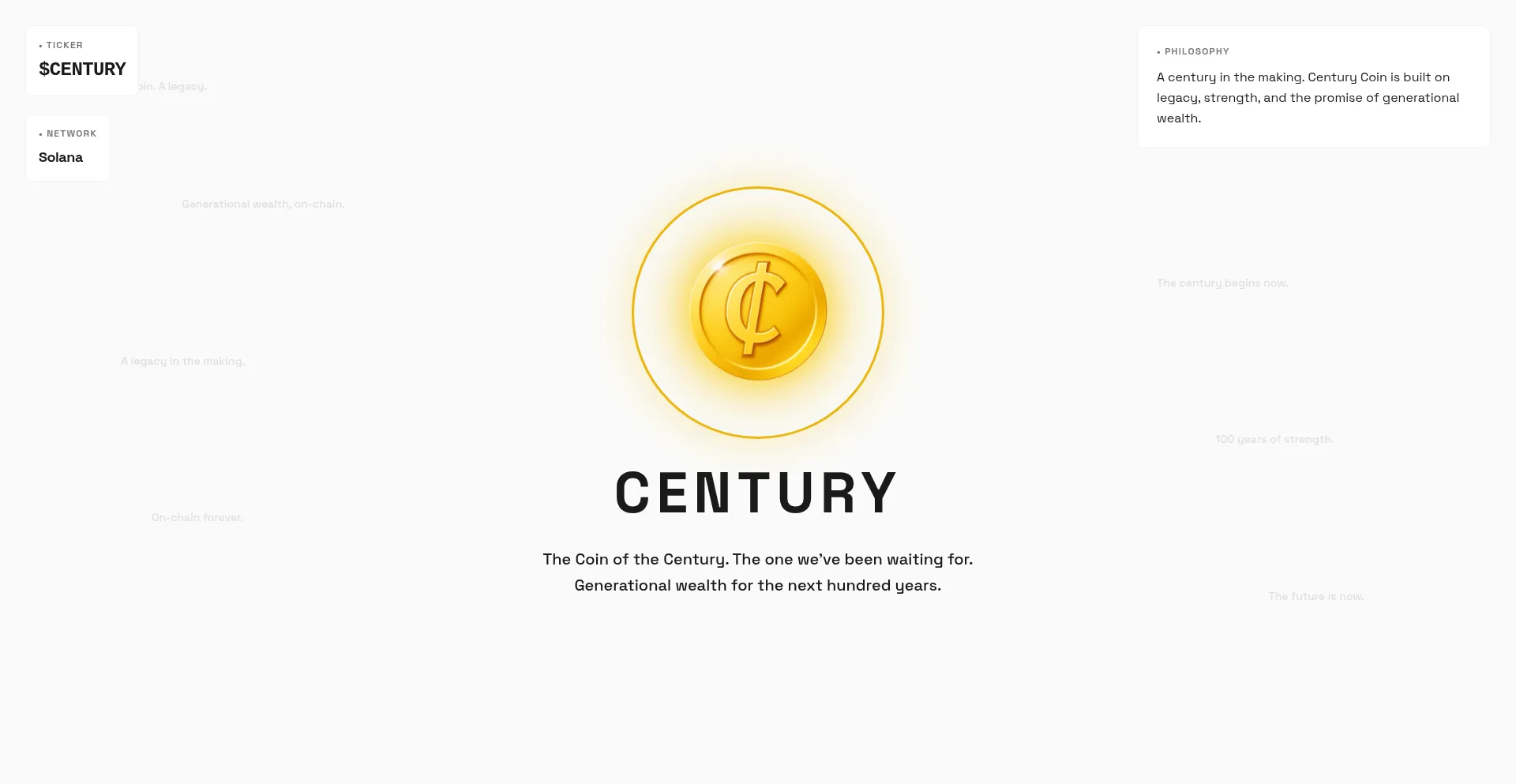 Century Coin - A century in the making. Built on legacy, strength, and the promise of generational wealth for the next hundred years on Solana blockchain.