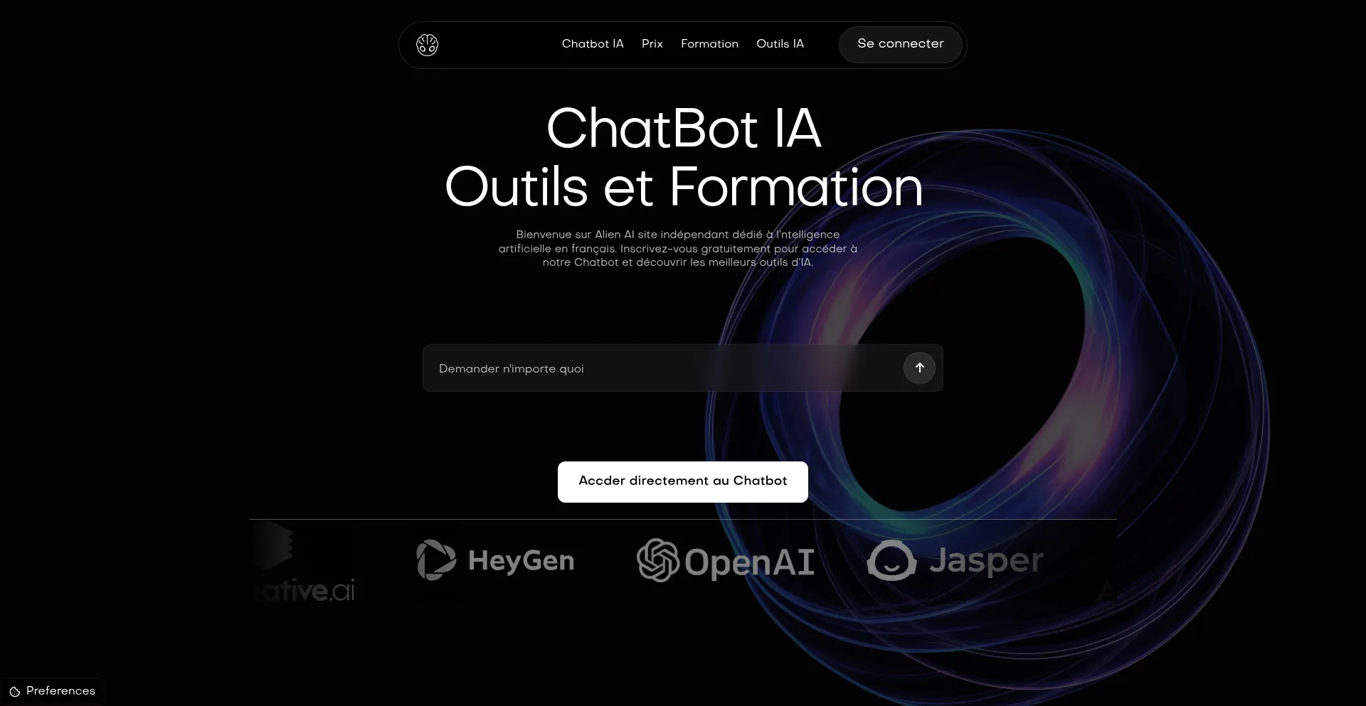 Découvrez le chatbot IA gratuit en français sur chatgpt.fr avec Alien AI. Votre Assistant IA avec prompts intégrés pour les Pro. Non affilié à OpenAI.