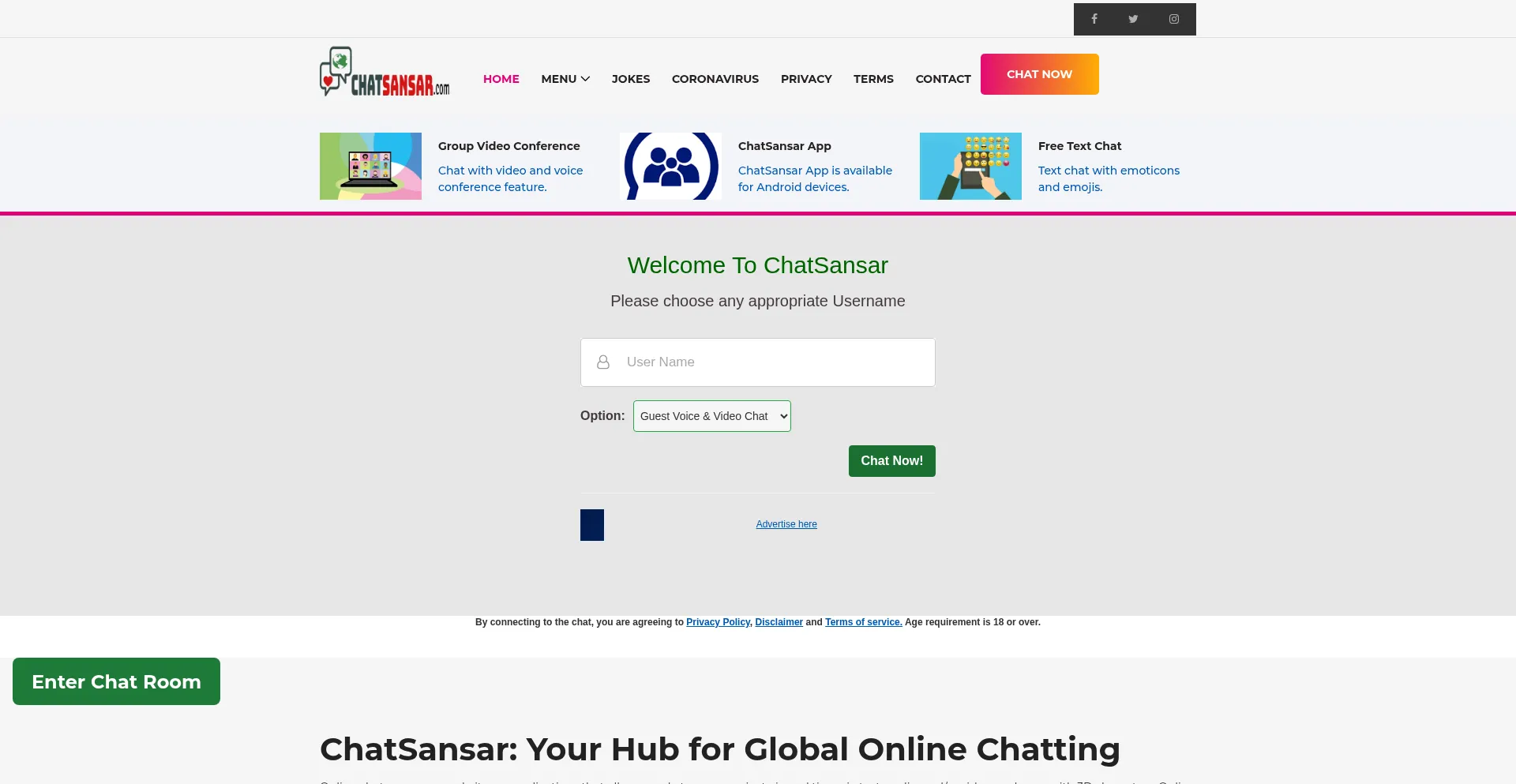 ChatSansar: Free Online Chat Rooms & Video Chat