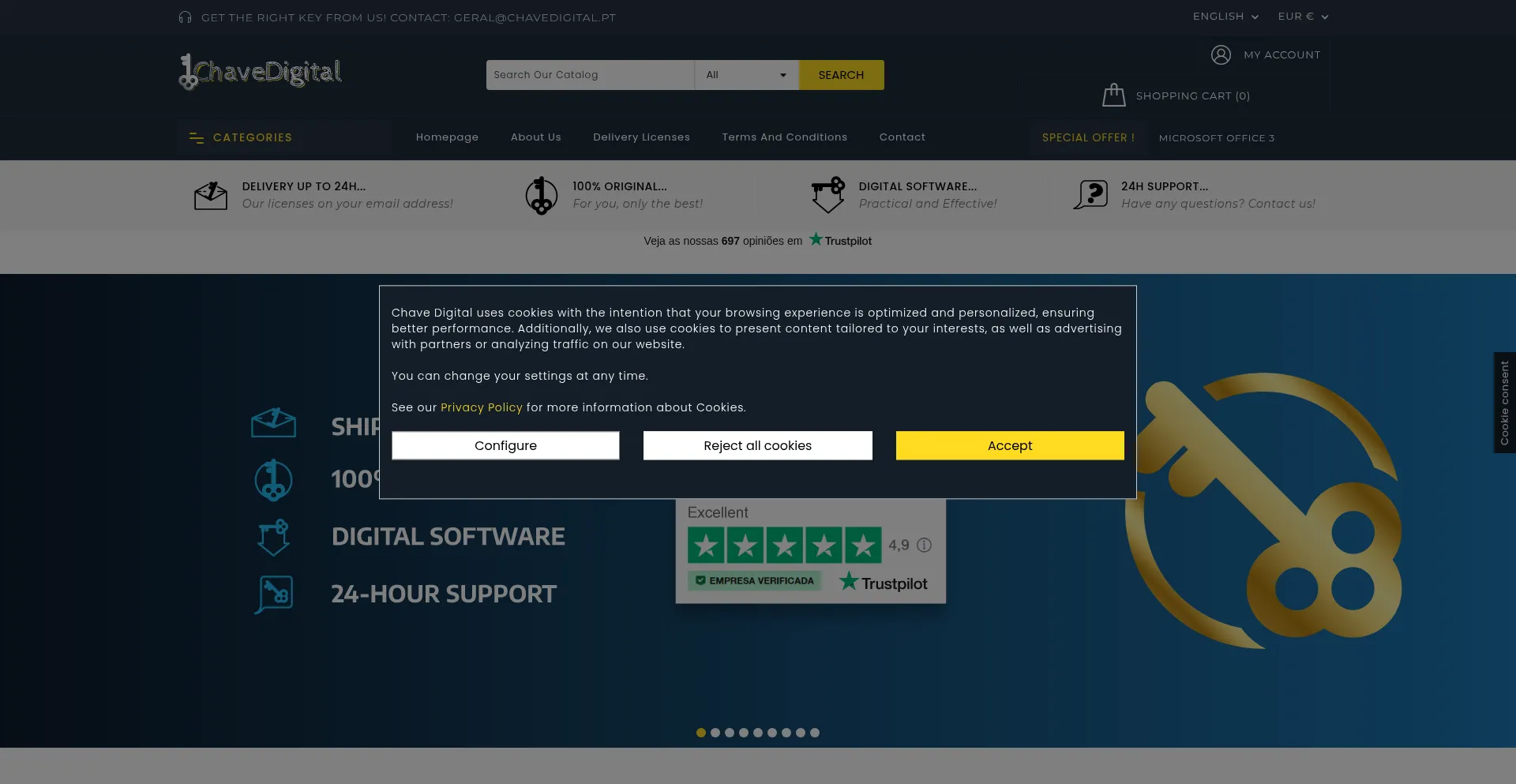 Le site web implémente des mécanismes de consentement aux cookies en conformité avec les réglementations de confidentialité telles que RGPD ou CCPA. Cela démontre que chavedigital.pt adhÚre aux standards de protection des données et fournit aux utilisateurs un contrÎle sur les pratiques de collecte de données personnelles.