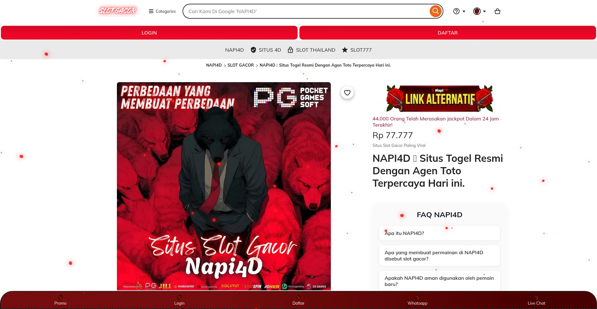NAPI4D Situs togel resmi dengan agen toto terpercaya hari ini hadir untuk memberikan pengalaman bermain yang aman, nyaman, dan menguntungkan.