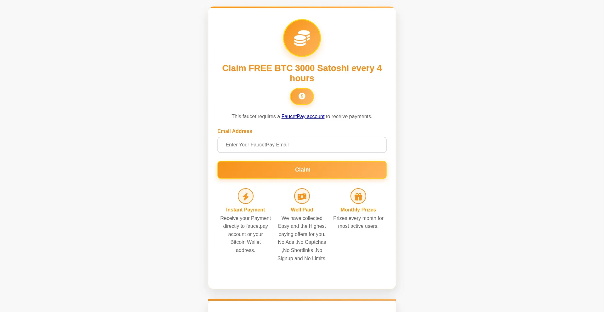 Claim FREE BTC 3000 Satoshi every 4 hours