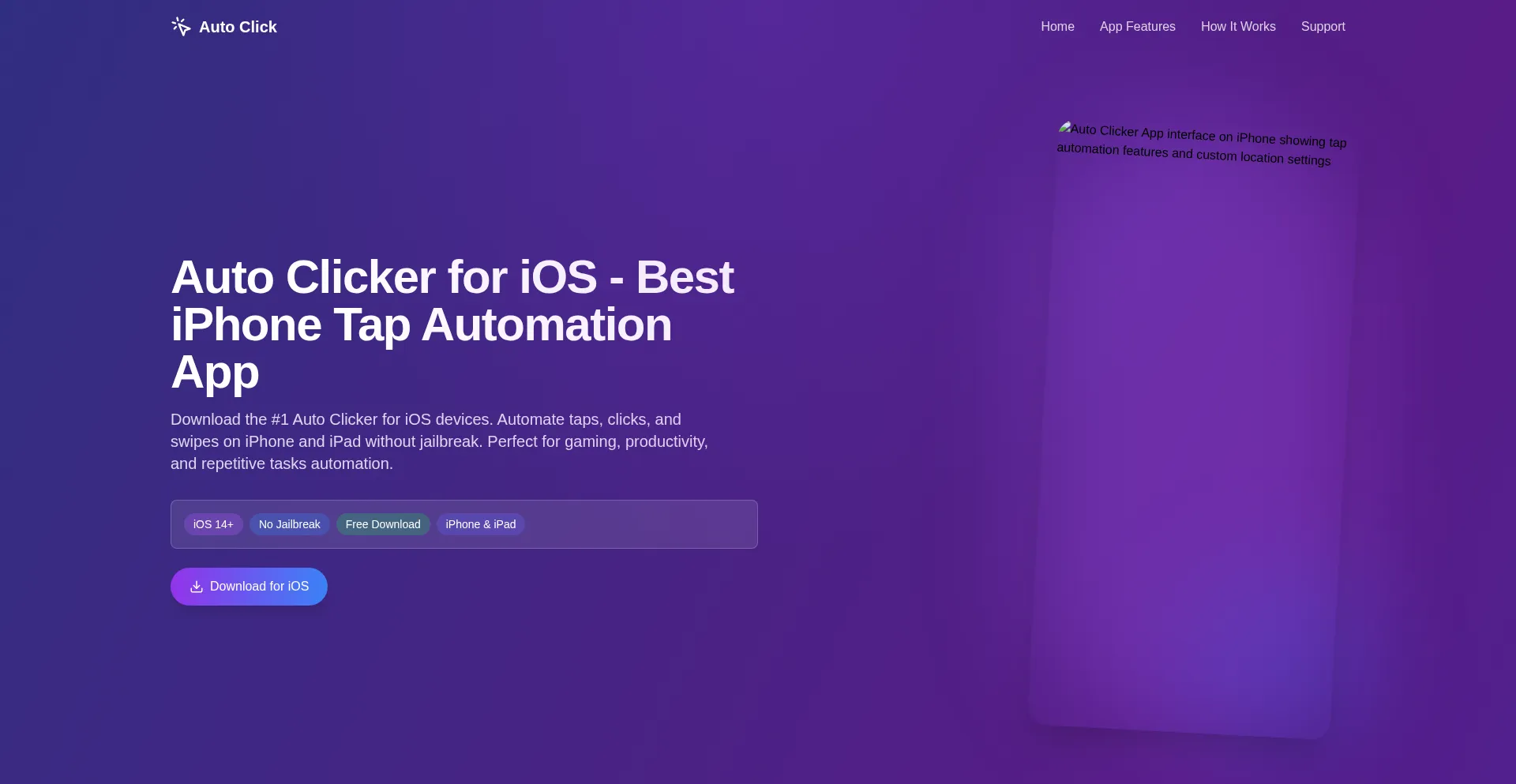 Download the best Auto Clicker app for iOS. Automate taps, swipes, and gestures on iPhone and iPad. No jailbreak required. Free download with custom tap locations and multi-poin...