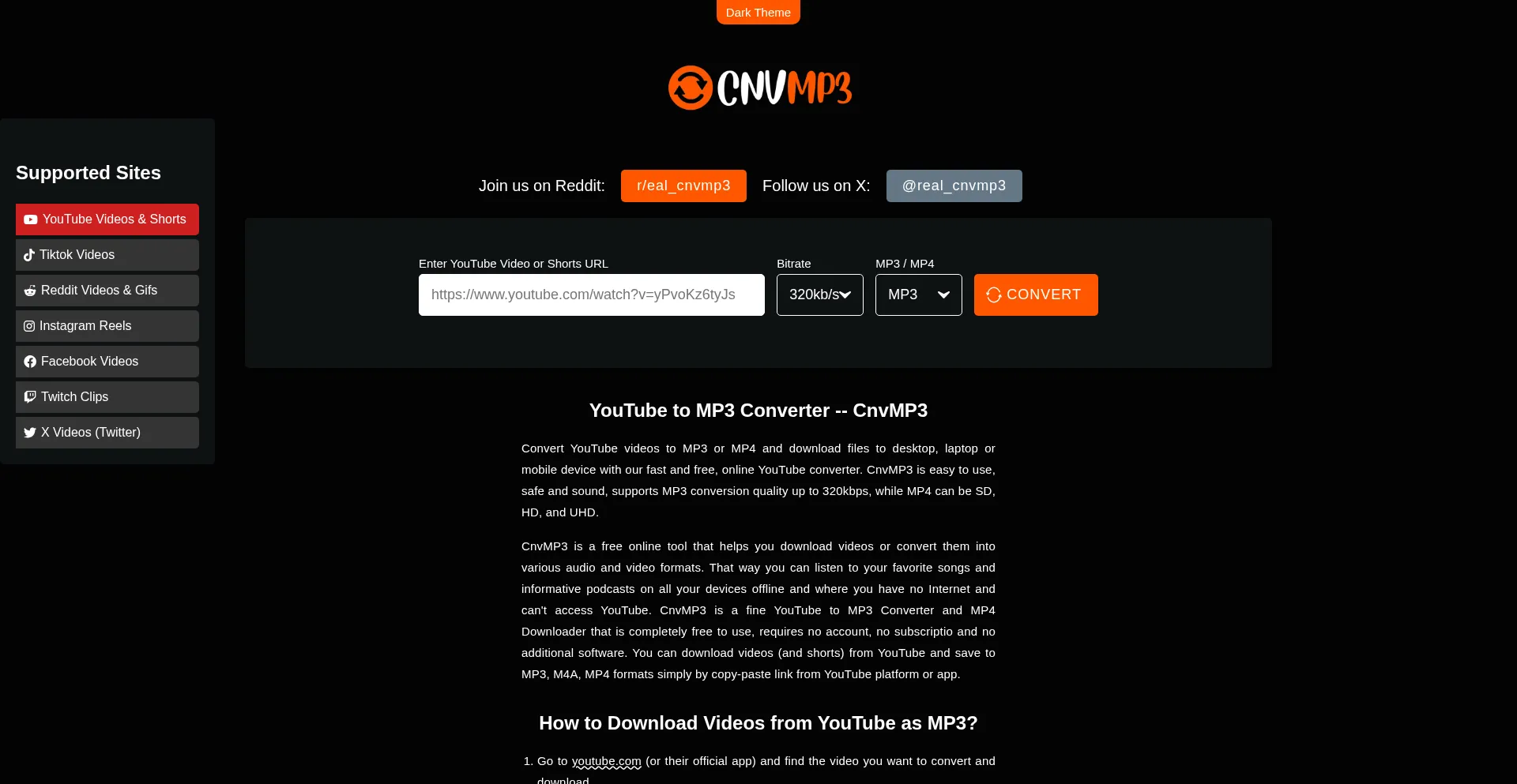 YouTube to MP3 Converter Online -- CnvMP3. Free and mostly Ad-free.