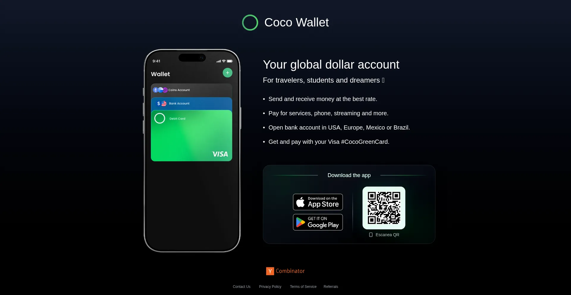 Abre tu cuenta global en dĂłlares con Coco Wallet y controla tu dinero desde cualquier paĂ­s. EnvĂ­a, recibe y gasta USDC o USD al instante, sin bancos ni fronteras. Tu dinero, ...