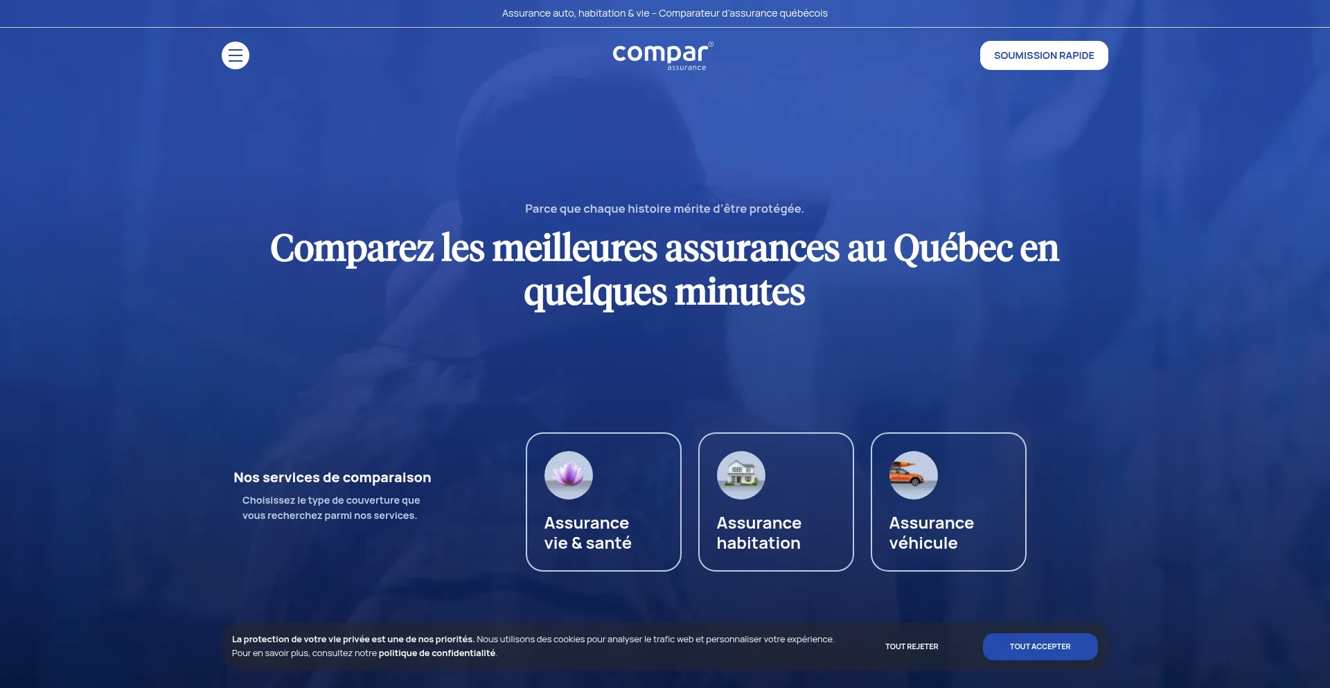 Comparez et économisez sur vos assurances auto, habitation et vie au Québec grùce à un service simple, gratuit, rapide, sécuritaire et sans engagement.