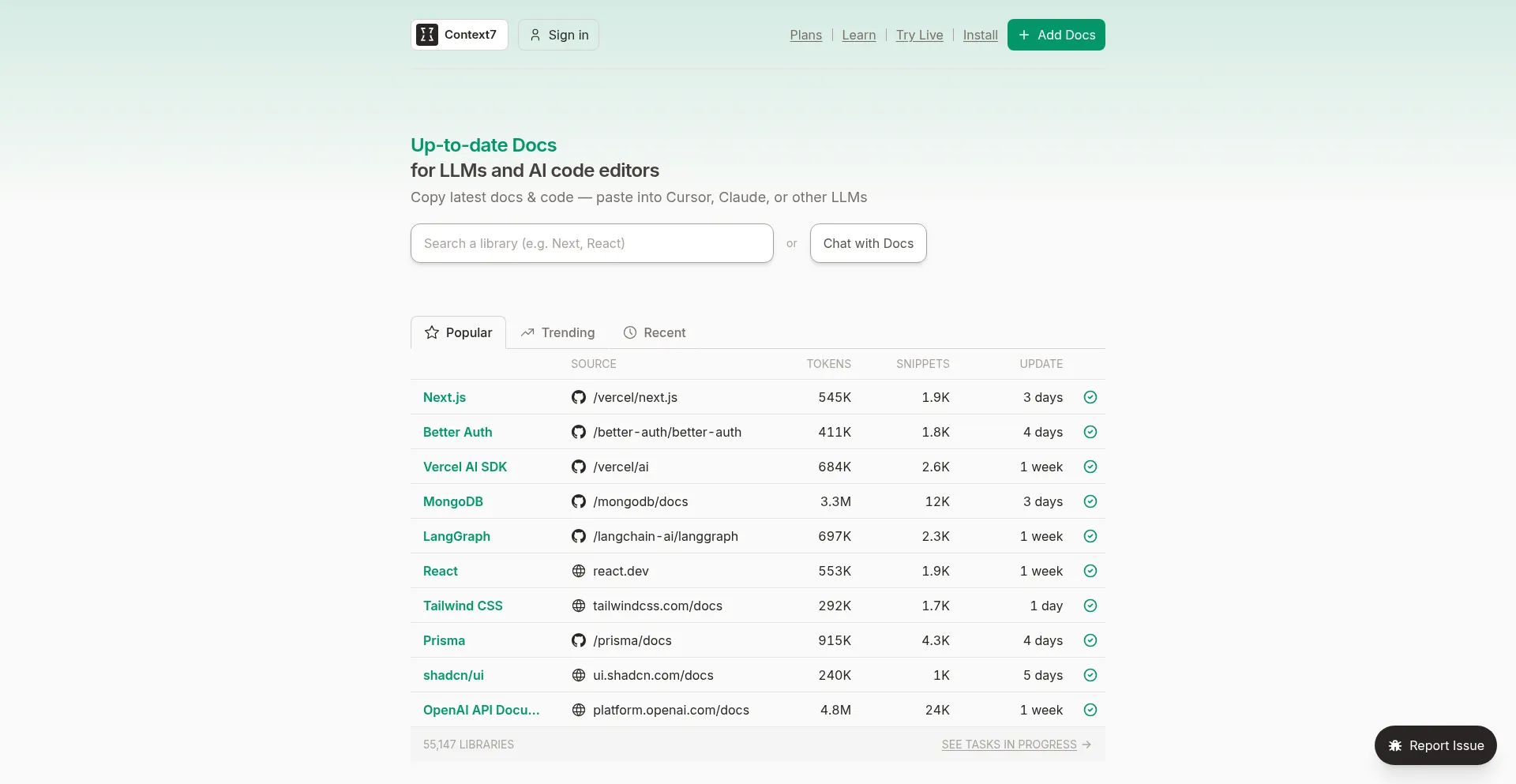 Generate context with up-to-date documentation for LLMs and AI code editors