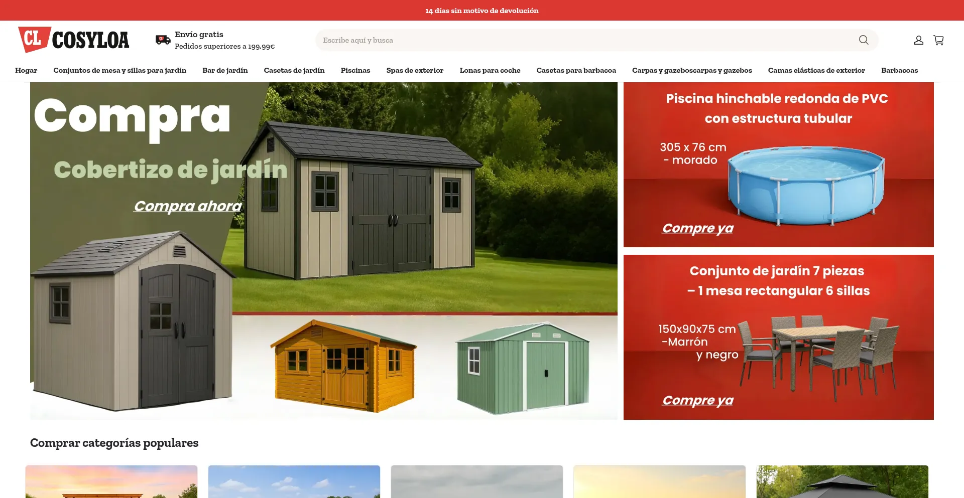 Renueva tu espacio exterior con Cosyloa: barbacoas, barras de jardín, camas elásticas, pérgolas, cobertizos, muebles de exterior y piscinas. Estilo, resistencia y fácil inst...