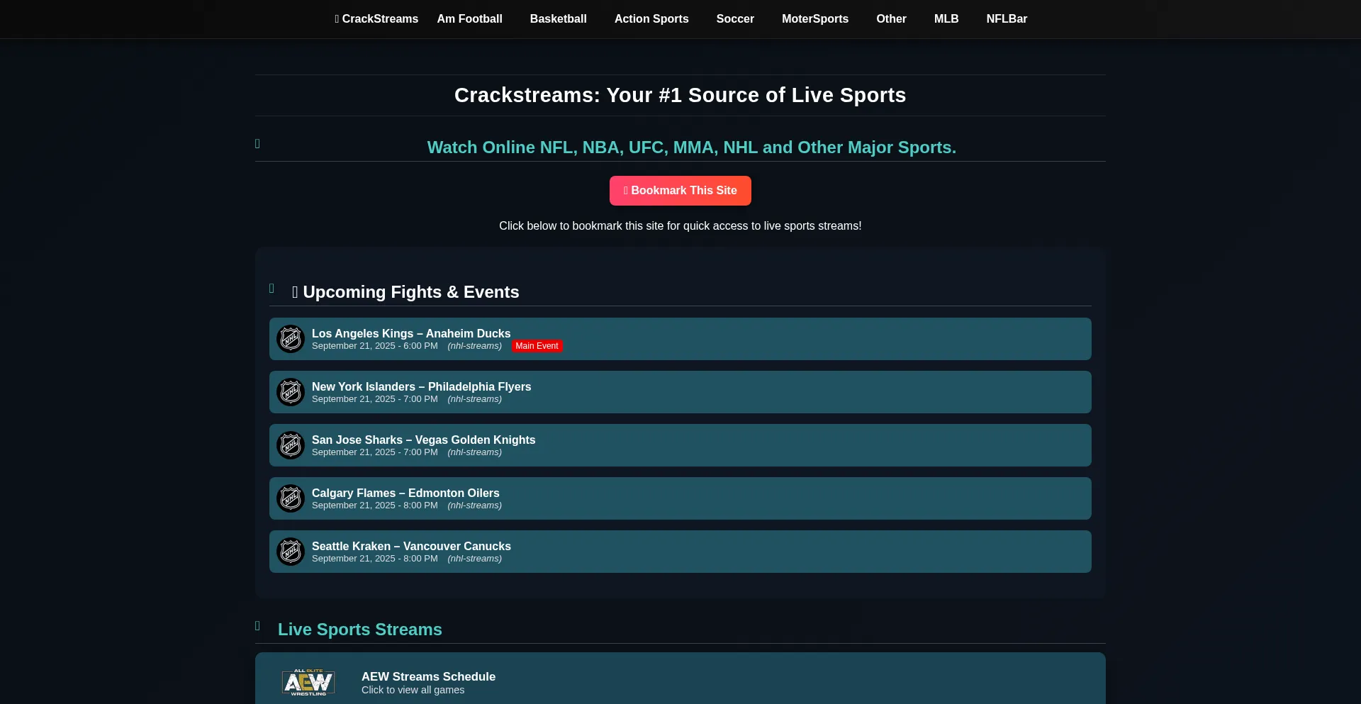 Crackstreams Website Provide HD Sports Streaming Including NFL, NBA, NHL, UFC, MMA, F1, Soccer, AM Football, Golf, Boxing, WNBA, PFL and Other Sports Streams.