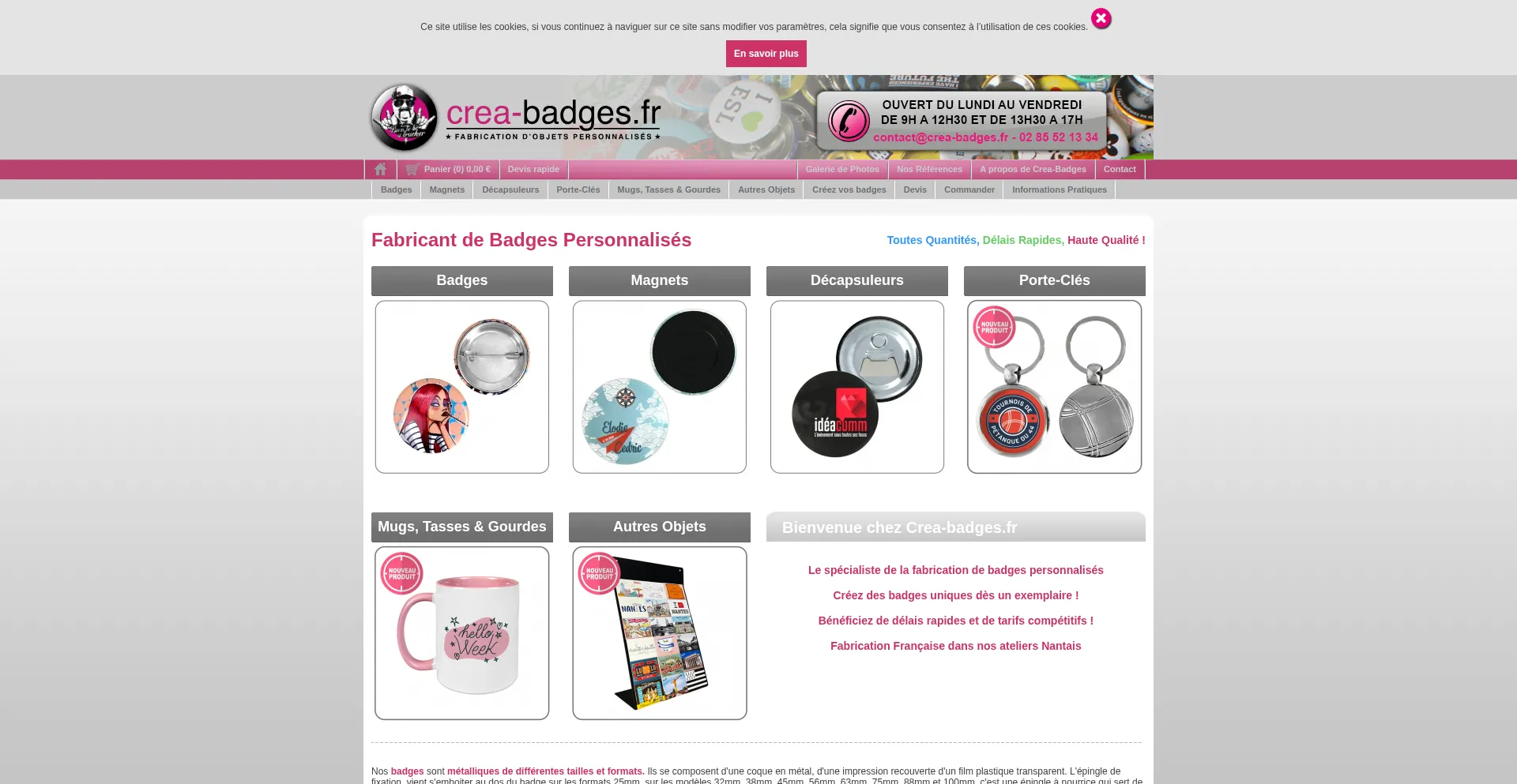 Crea-badges.fr - Fabricant Français de Badges Ronds Personnalisés en Métal Tous Formats - Décapsuleurs - Miroirs de Poche