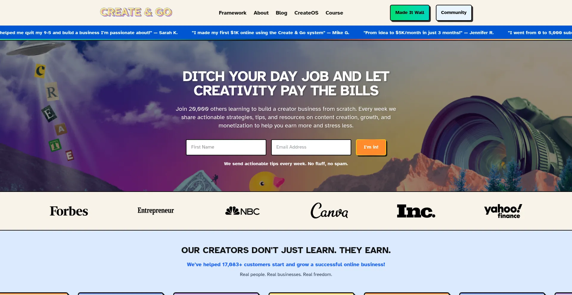 Learn how to start a blog, build an audience, and monetize your content. At Create and Go, we'll teach you to start an online business and escape the 9-5.