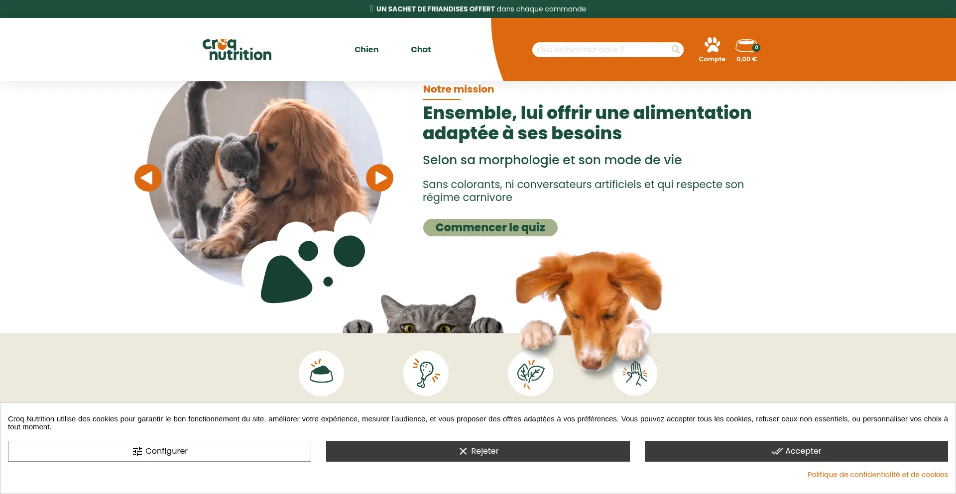 Animalerie en ligne, spĂ©cialiste en croquettes naturelles pour chien et chat super premium, holistiques sans-cĂ©rĂ©ales, friandises naturelles, produits d’hygiĂšne