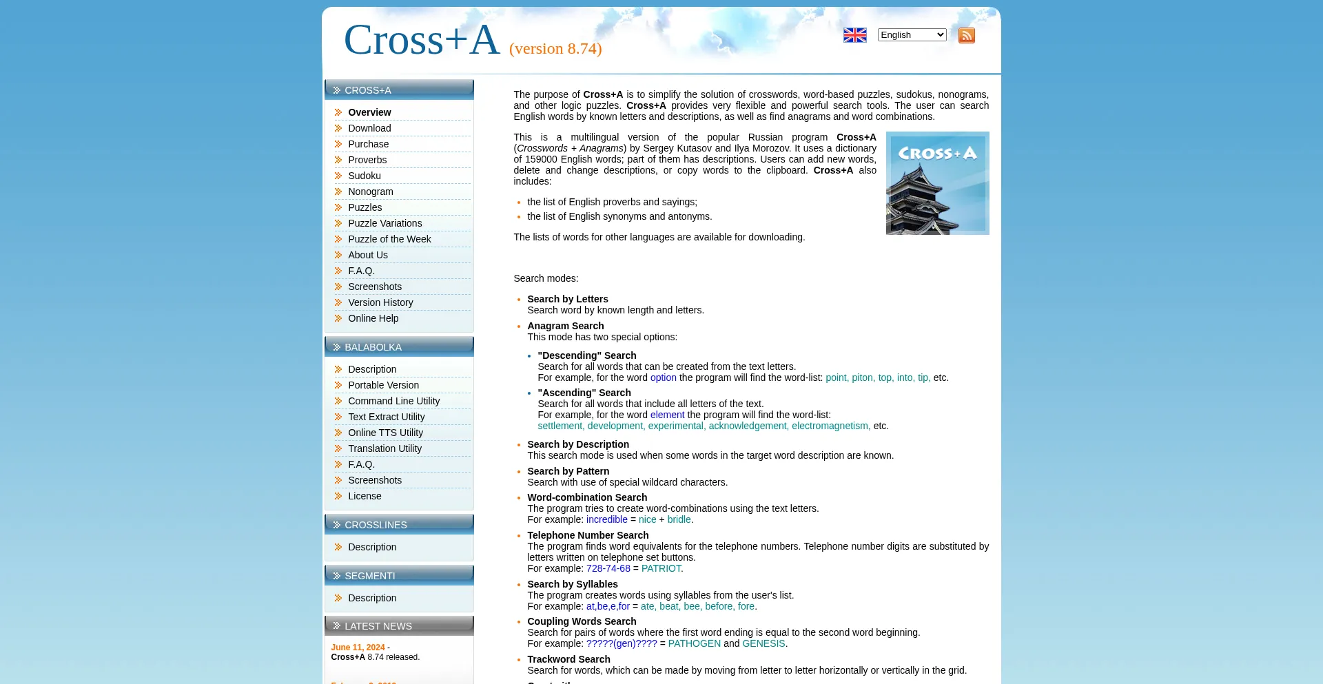 Cross+A helps to solve crosswords, anagrams, word puzzles, logic puzzles