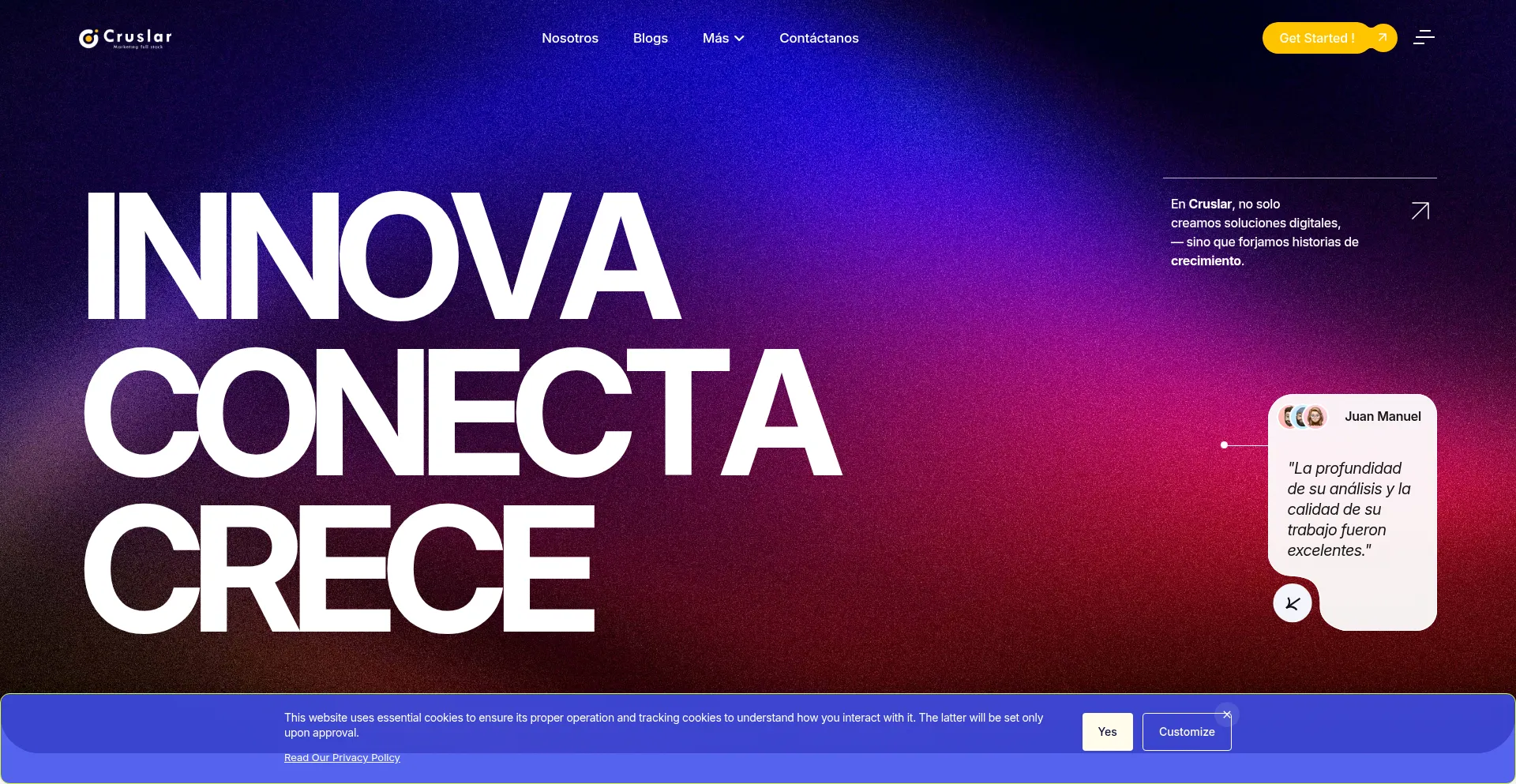 Le site web implémente des mécanismes de consentement aux cookies en conformité avec les réglementations de confidentialité telles que RGPD ou CCPA. Cela démontre que cruslar.com adhÚre aux standards de protection des données et fournit aux utilisateurs un contrÎle sur les pratiques de collecte de données personnelles.