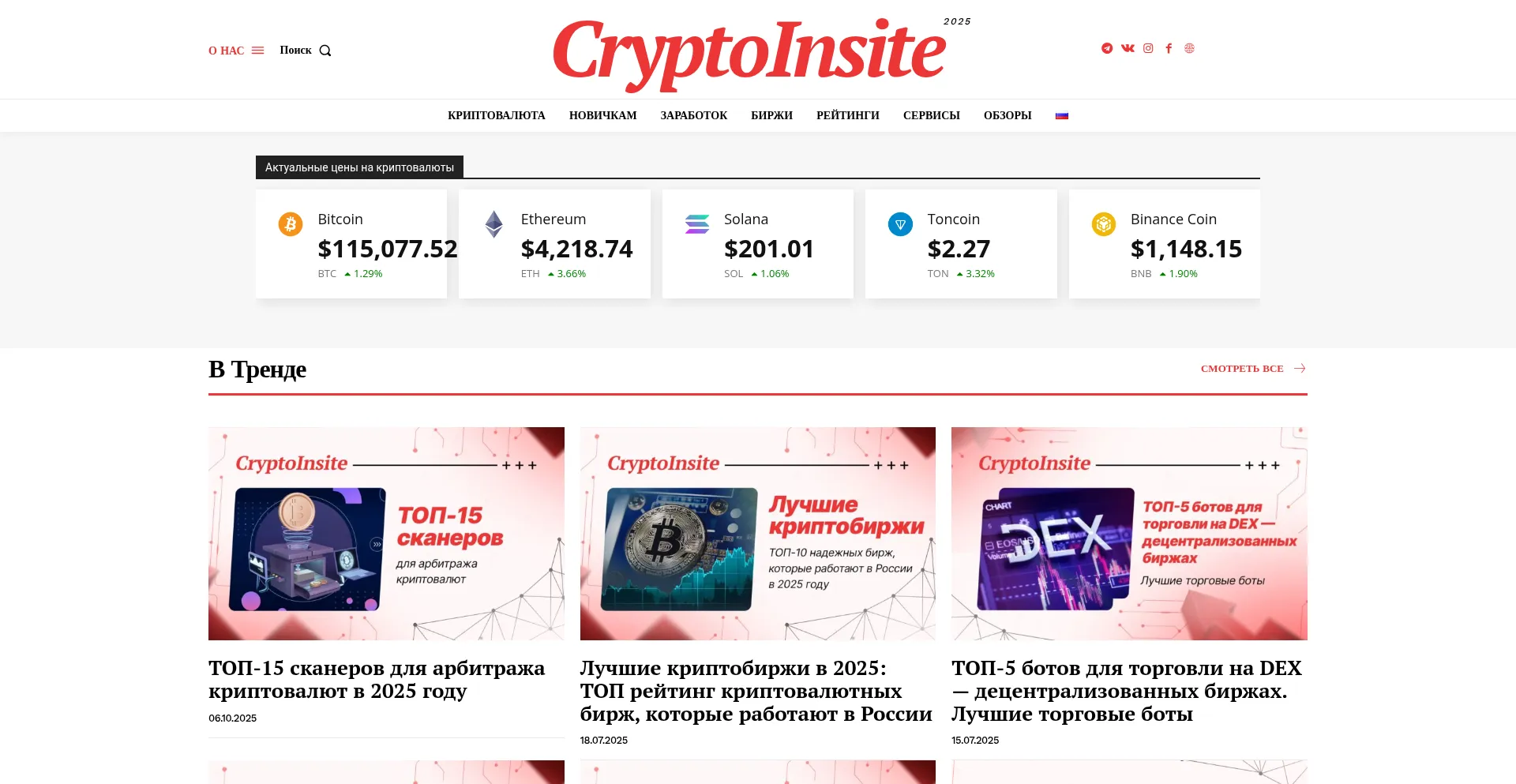Crypto Insite - ĐąŃ€Đ”ĐœĐŽŃ‹ ĐșŃ€ĐžĐżŃ‚ĐŸĐČĐ°Đ»ŃŽŃ‚ĐœĐŸĐłĐŸ Ń€Ń‹ĐœĐșа, рДĐčŃ‚ĐžĐœĐłĐž, ĐŸĐ±Đ·ĐŸŃ€Ń‹