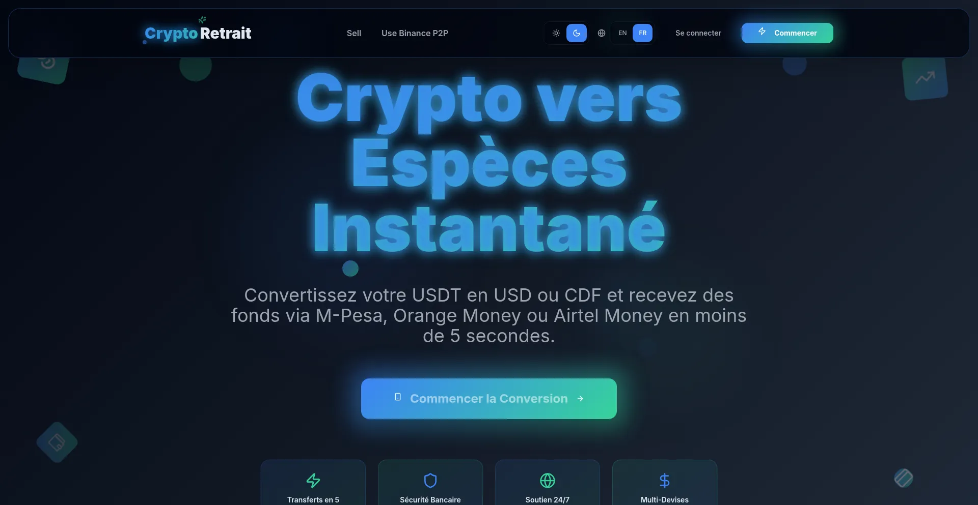 Crypto Retrait - Instant Crypto to USD/CDF Exchange
