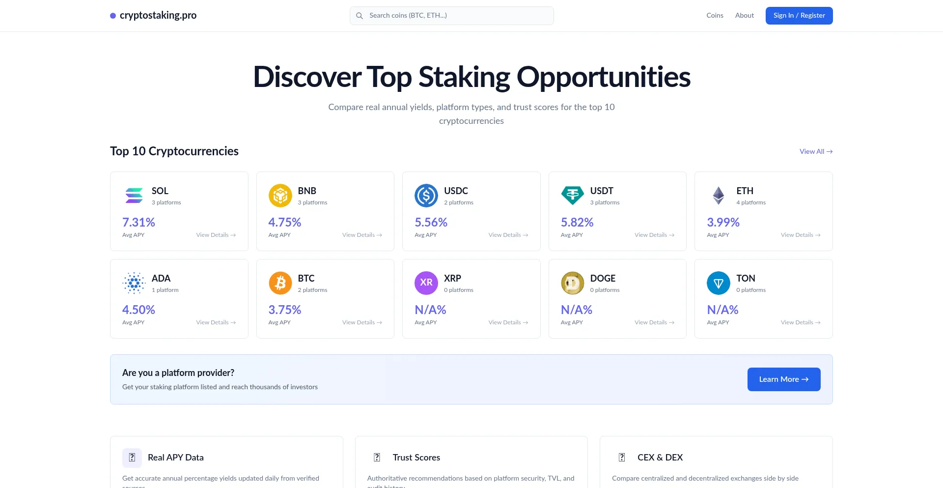 cryptostaking.pro · Compare Real Staking APY & Trust Scores