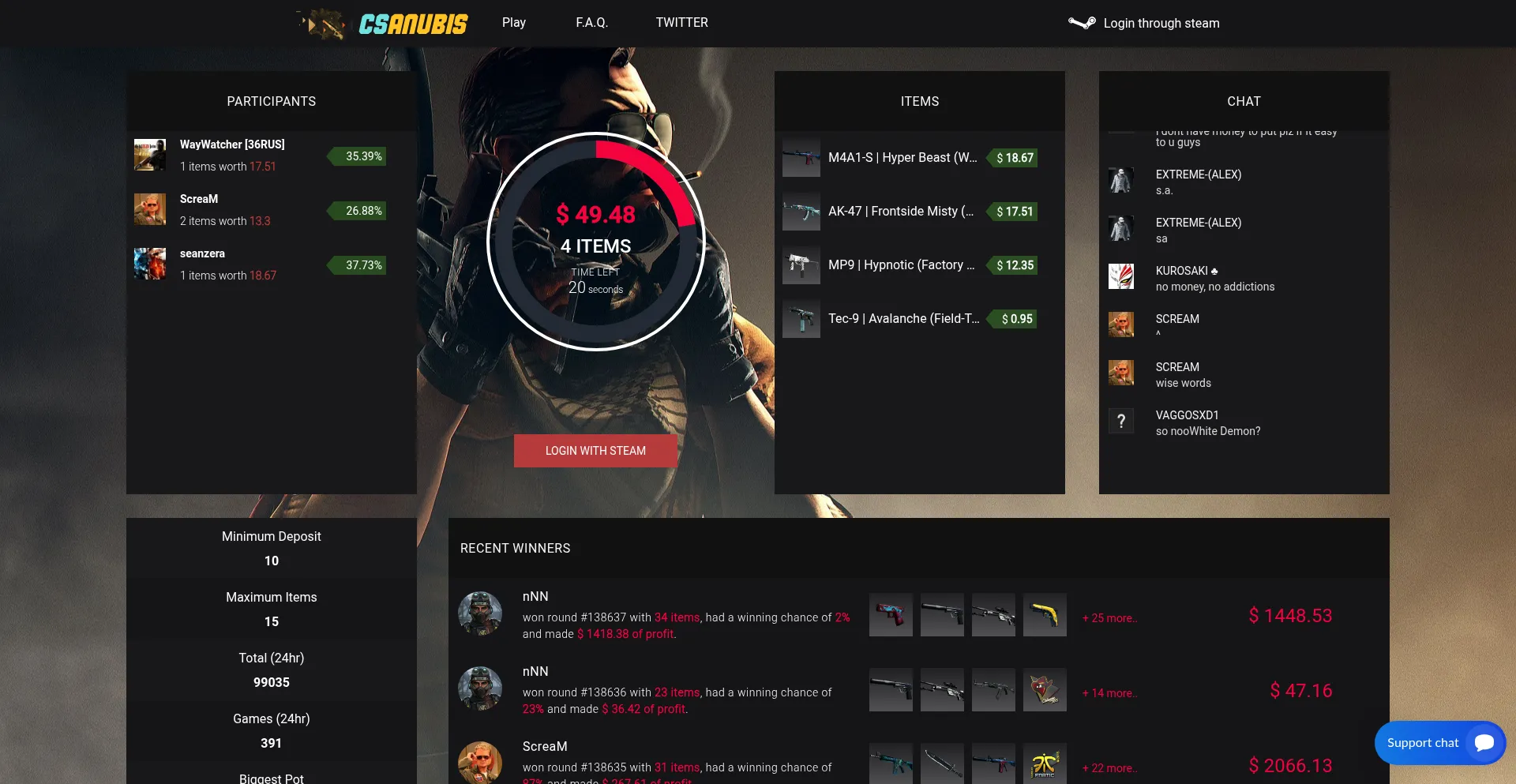 $ 49 - 20s - CSANUBIS - #1 CS2 Jackpot