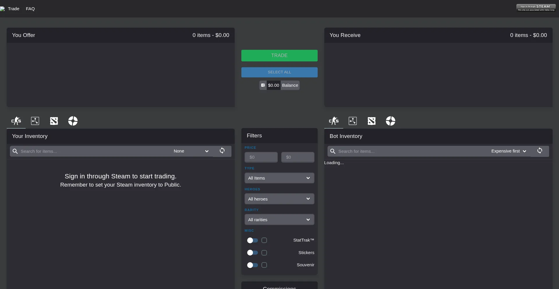 CS2 skins trade bots with lowest fees and biggest inventories. Exchange now