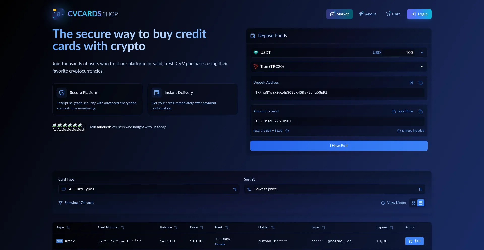 Join thousands of users who trust our platform for valid, fresh CVV purchases using their favorite cryptocurrencies.