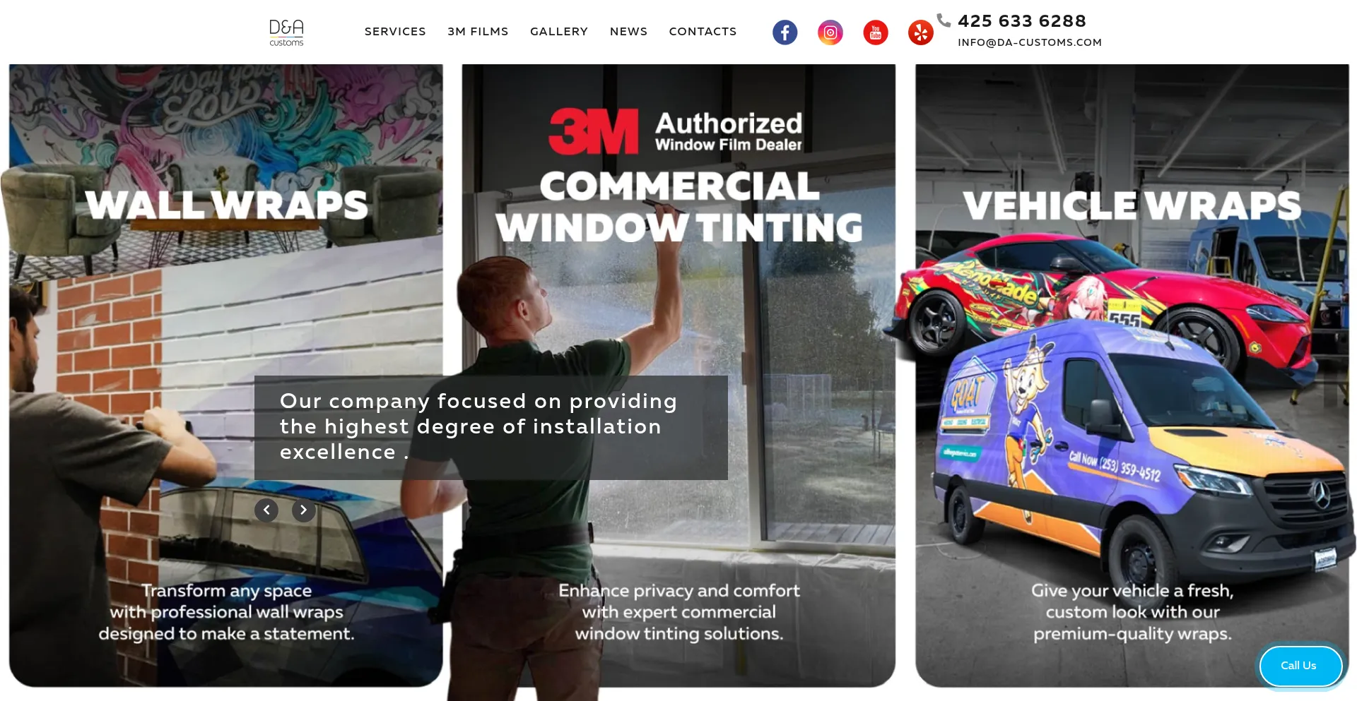 D&A Customs Sign Shop located in Tukwila, WA offers Color Change Wraps, Vehicle Graphics, Commercial Window Tint, Wall Graphics.