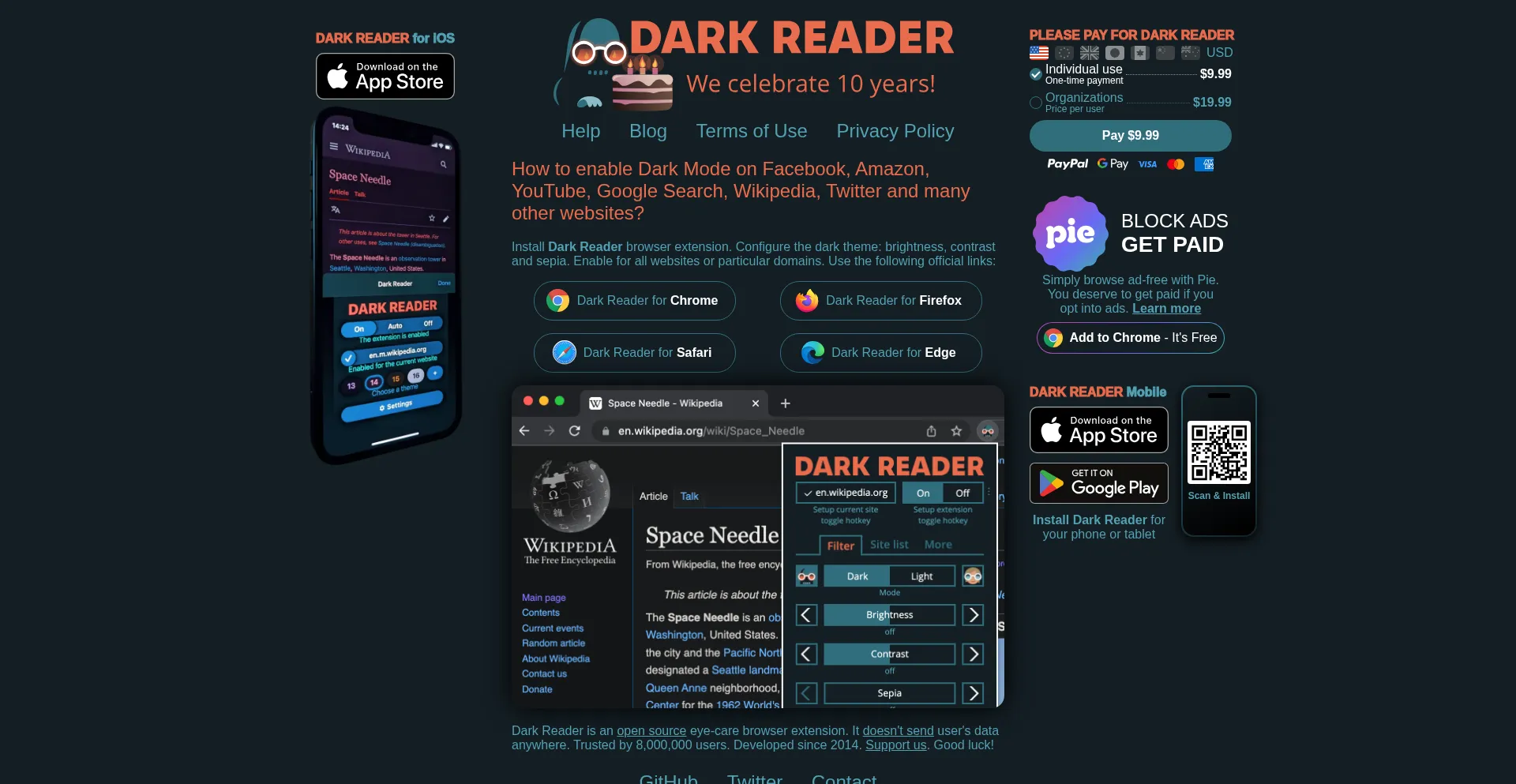 darkreader.org dispose d'une application mobile iOS disponible, indiquant une accessibilité multiplateforme pour les utilisateurs d'appareils Apple.