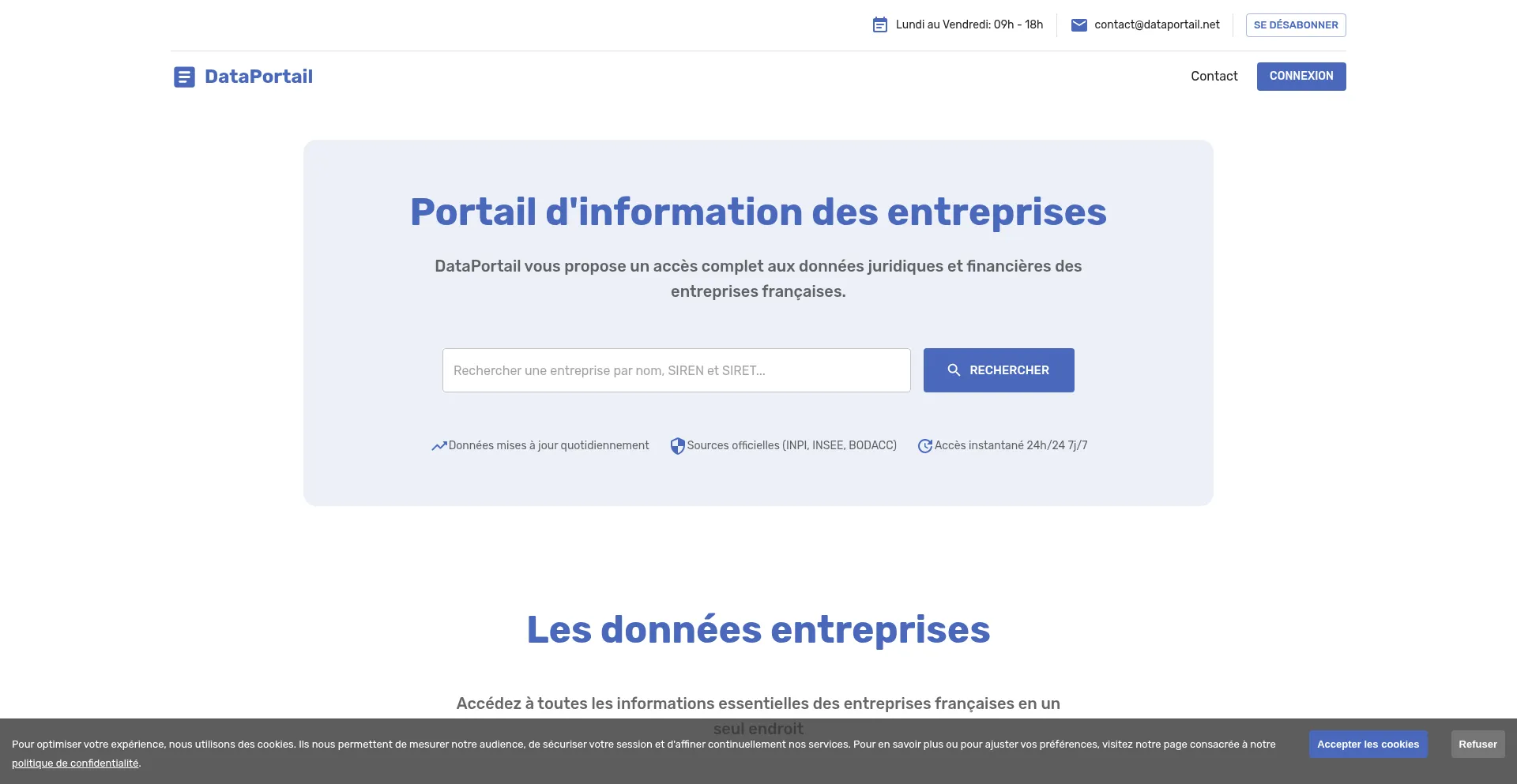 DataPortail, le portail d'information des entreprises françaises. Accédez à des données juridiques, documents officiels, dirigeants et actionnaires.