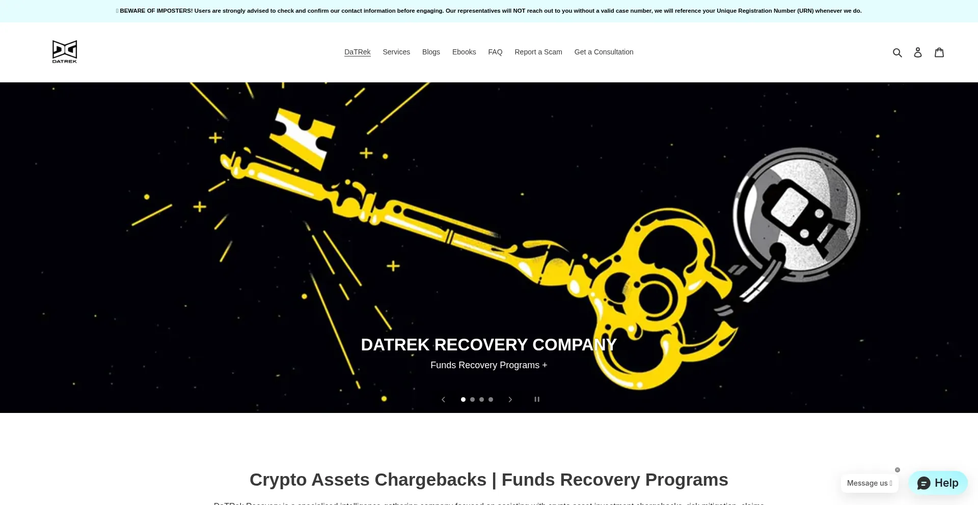 Le site web datrekrecoverycompany.com annonce des services de récupération de fonds pour les actifs perdus ou volés. Tandis que certains opÚrent sur des structures d'honoraires de contingence, d'autres peuvent exiger des paiements anticipés, ce qui peut indiquer des opérations frauduleuses. Vérifiez les références et la conformité réglementaire avant d'engager de tels services.
