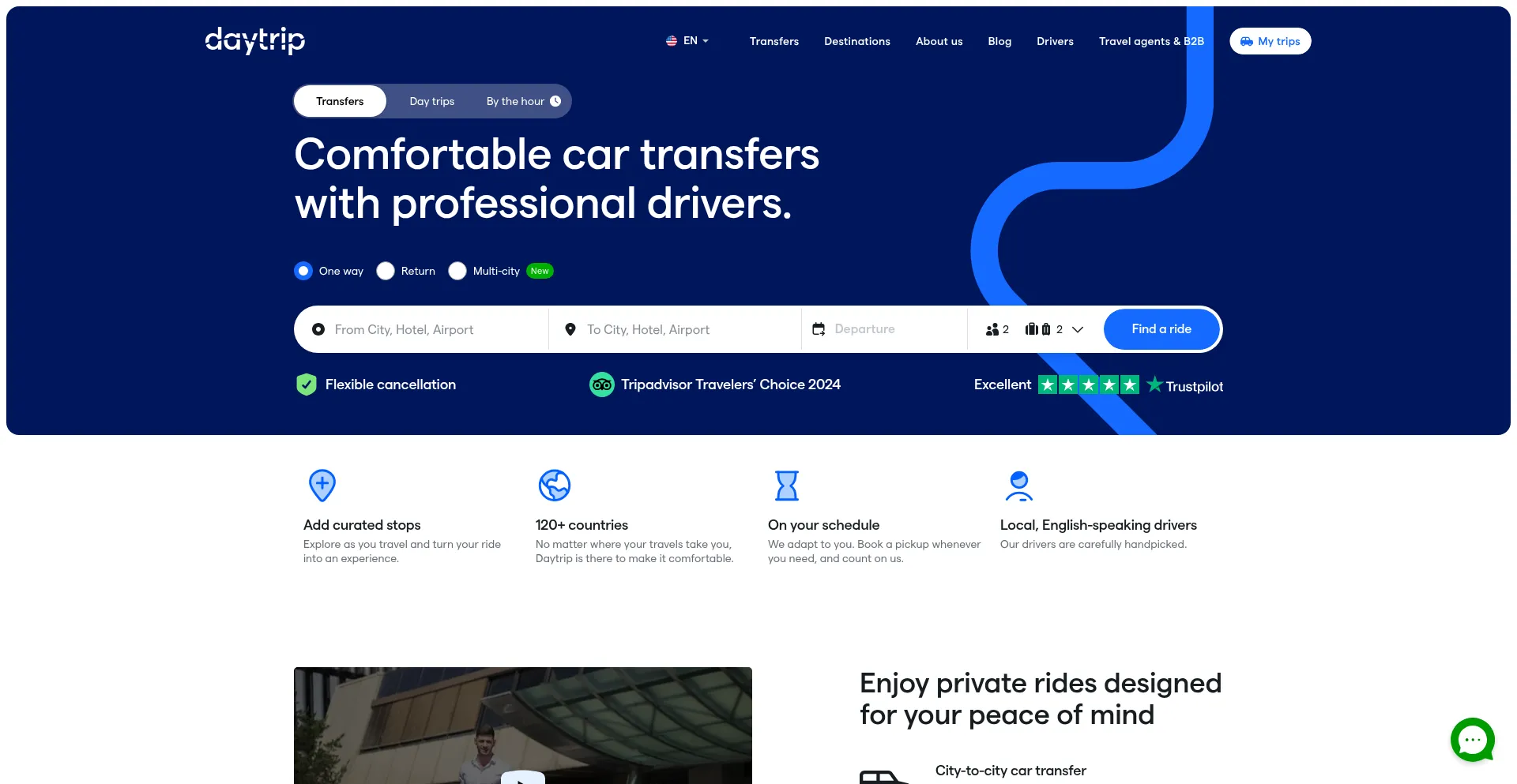 Door-to-door transfers in 120+ countries with the comfort of a private car. Enjoy sightseeing on the way with Daytrip’s local drivers.