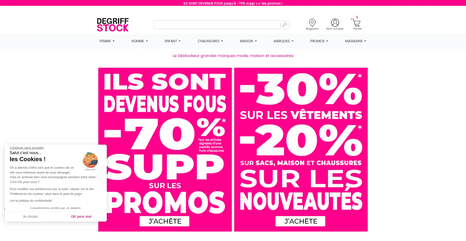 Degriffstock : grandes marques Ă  prix dĂ©griffĂ©s pour toute la famille. VĂȘtements, chaussures, accessoires jusqu’à -70%. Livraison rapide & retours faciles.