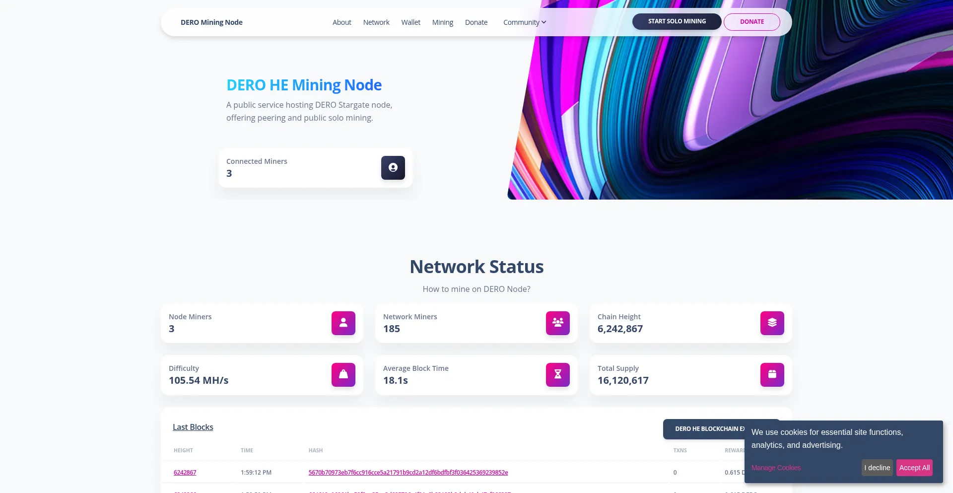 Public node to support DERO HE network. Join the DERO network and help to secure the blockchain today and enjoy solo mining.