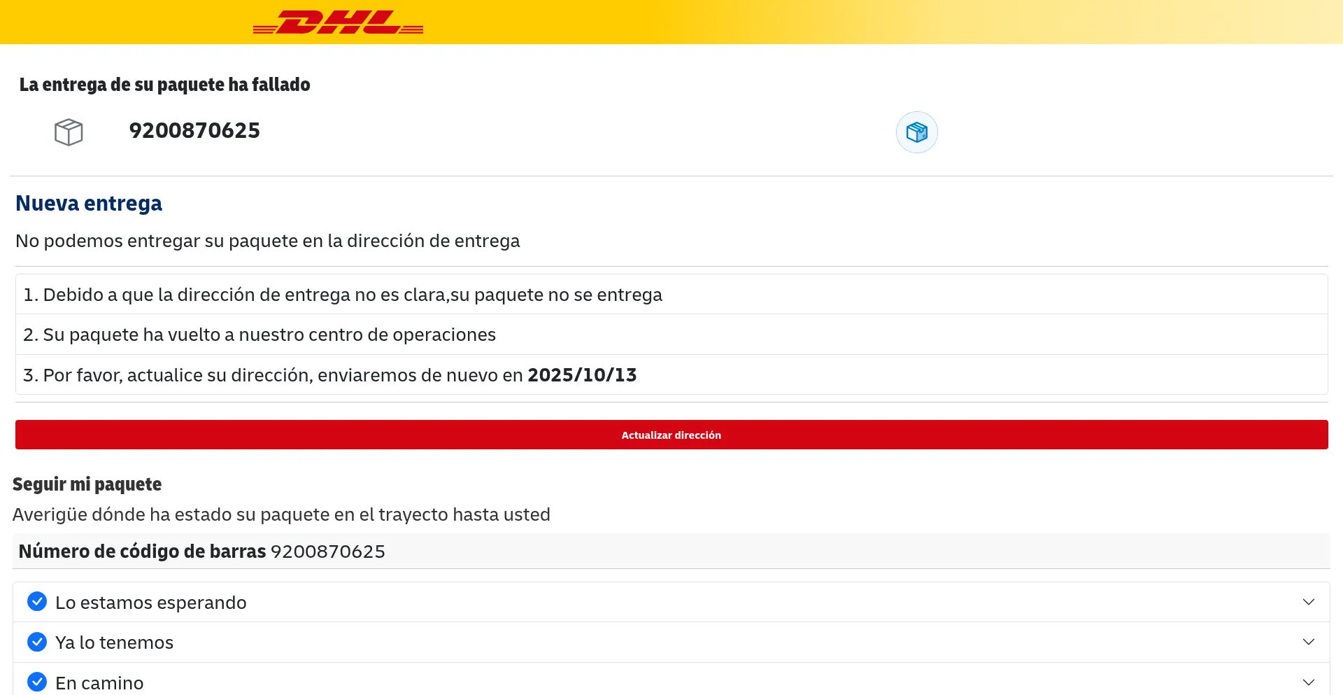 Le site web prĂ©sente de fortes similitudes avec des opĂ©rations de phishing connues conçues pour imiter des entitĂ©s de confiance et voler des identifiants d'utilisateur, des informations de paiement ou des donnĂ©es personnelles. Exercez une prudence extrĂȘme lors de l'interaction avec dhlasd.us.cc et Ă©vitez de saisir des informations sensibles.