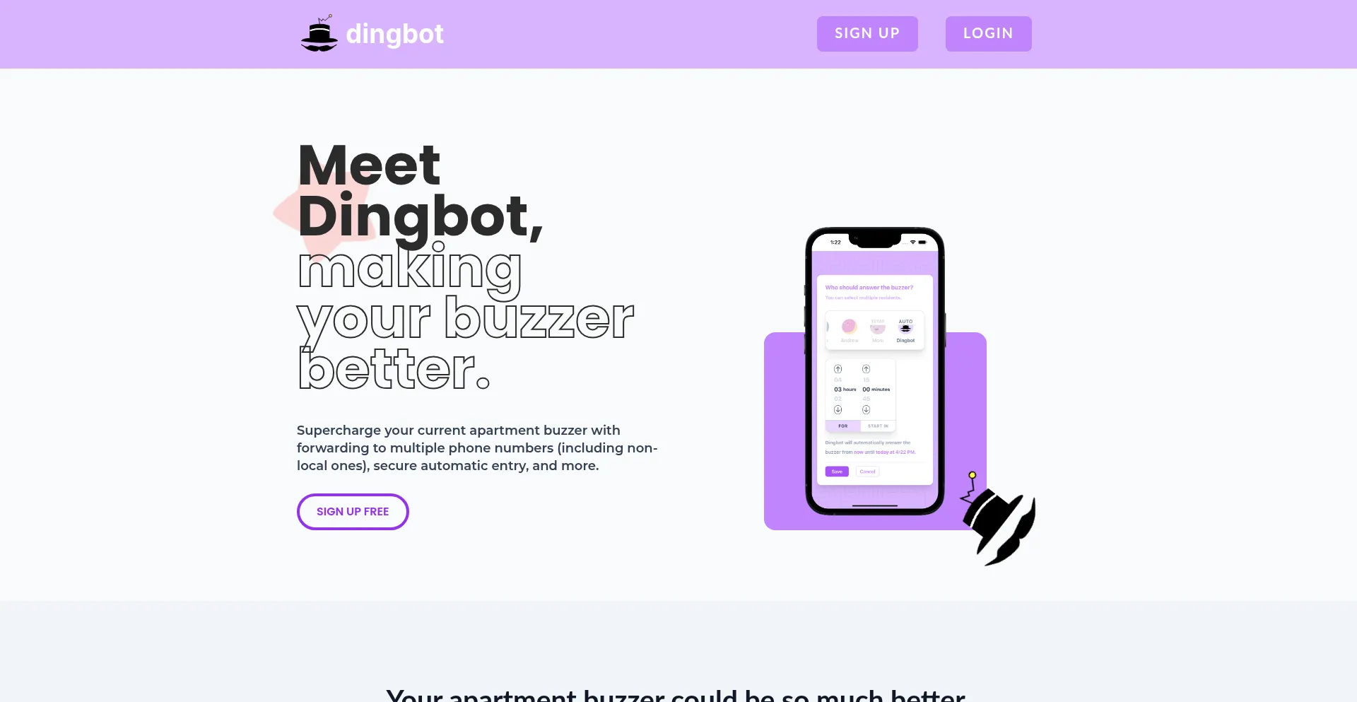 Dingbot works with your apartment buzzer to add forwarding to multiple phone numbers (including non-local), secure automatic entry, and more.