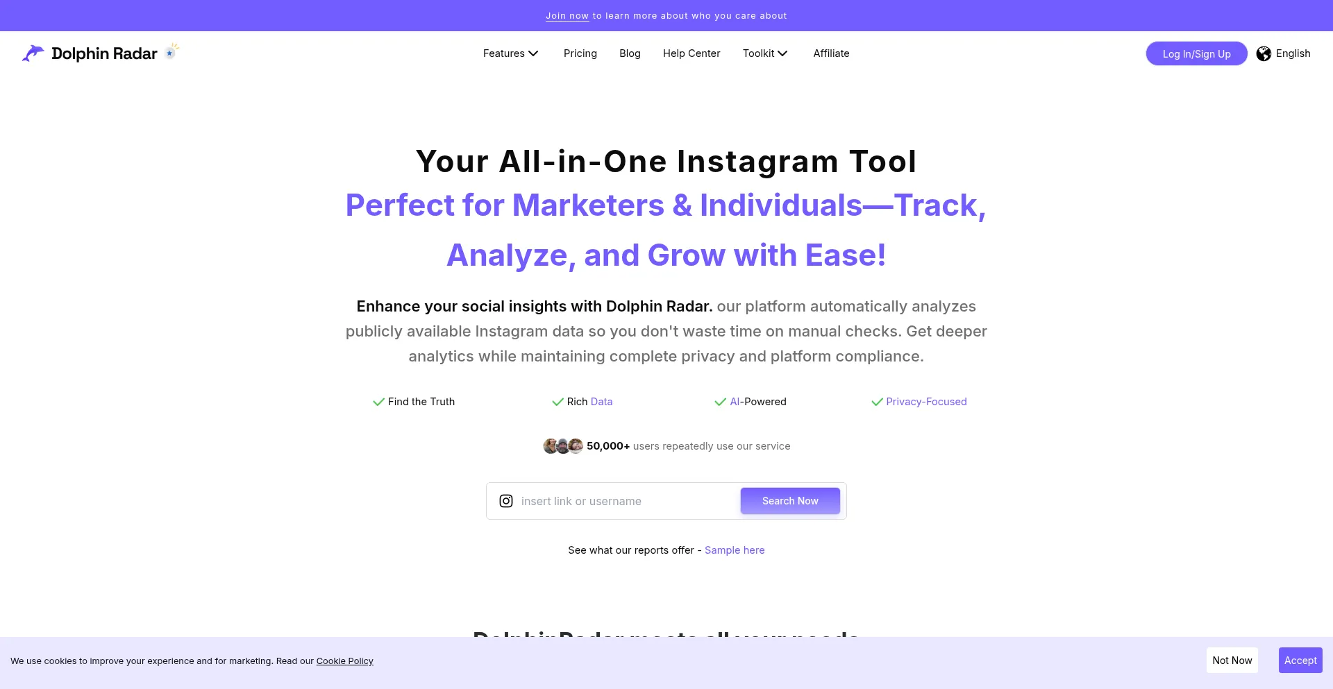 Boost your Instagram strategy with DolphinRadar. Analyze follows, likes & audience trends with AI—fast, private, and 100% platform compliant.