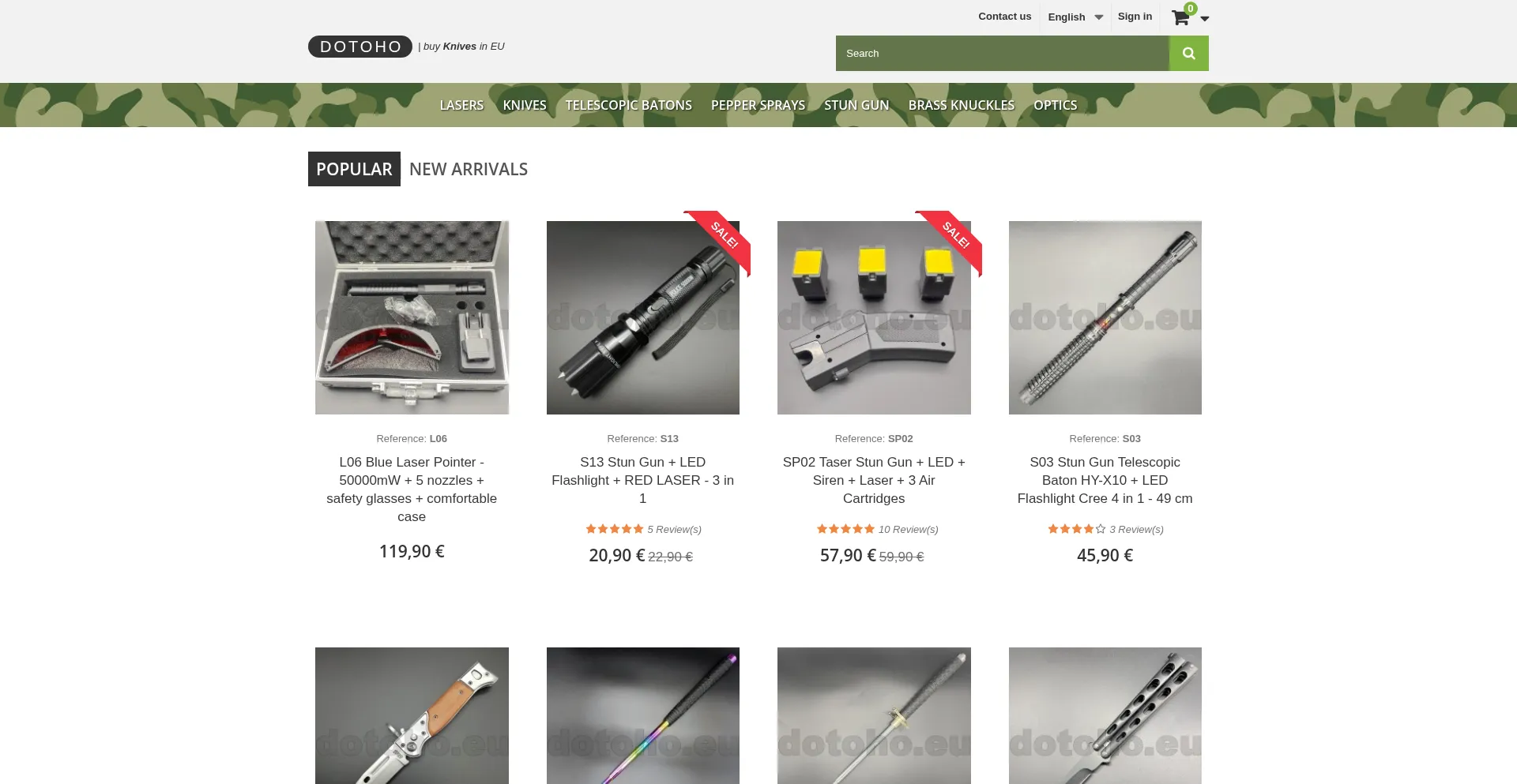 Buy stun gun, taser, butterfly knife, brass knuckles and more for self defence. - Dotoho