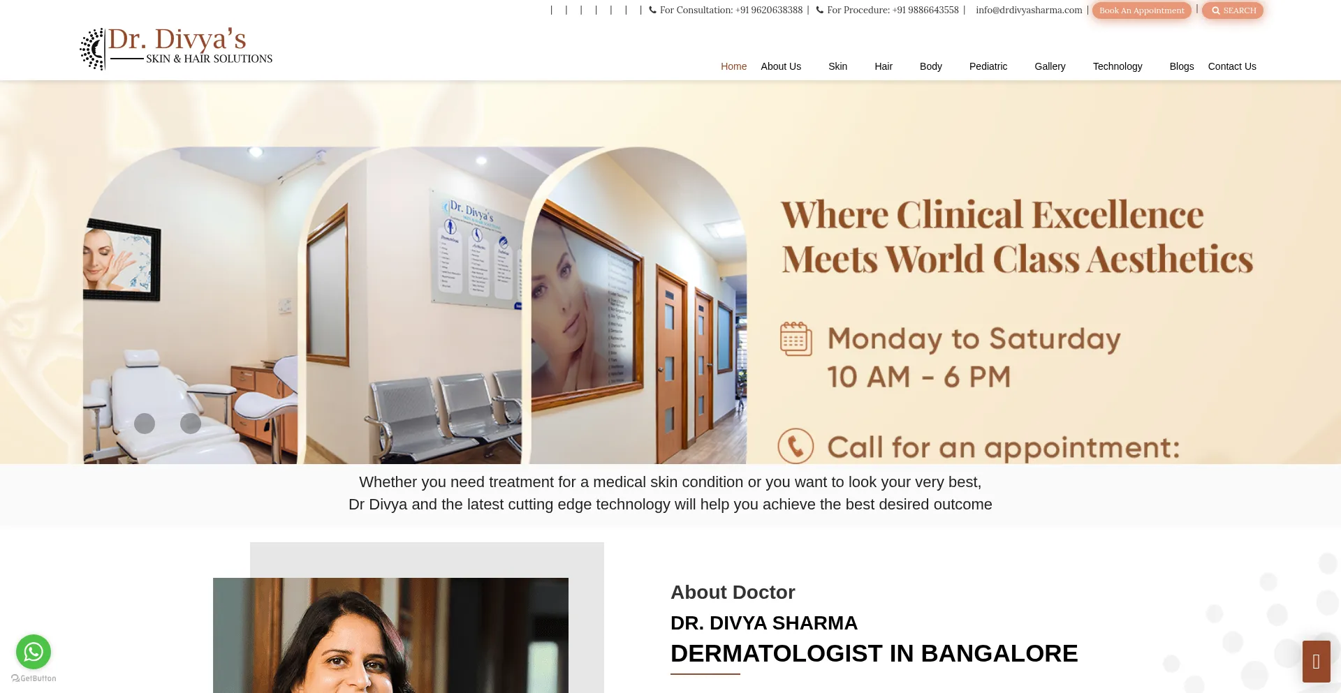 Dermatologist in Bangalore, Dr. Divya Sharma, offers expert skin & hair treatments. Visit the best skin care clinic for personalised care by top specialists.