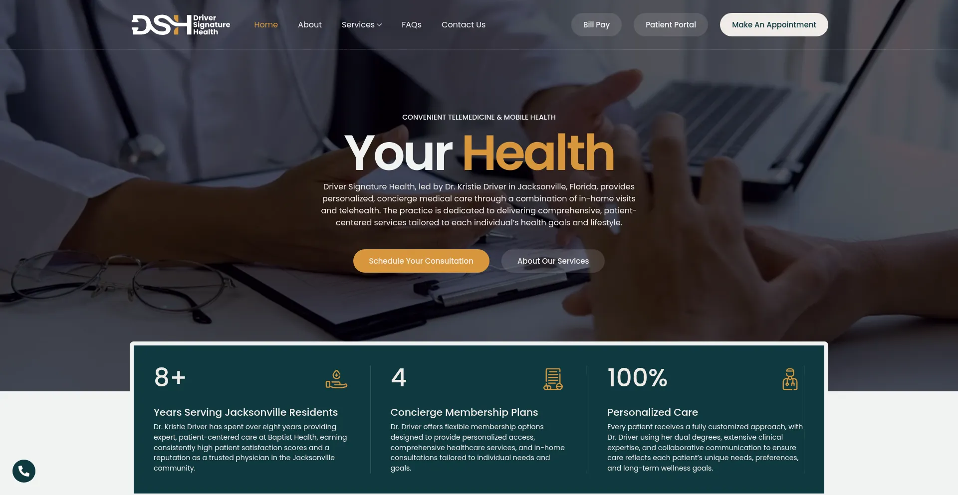Driver Signature Health, led by Dr. Kristie Driver in Jacksonville, Florida, provides personalized, concierge medical care through a combination of in-home